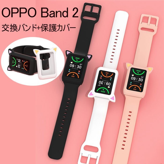 OPPO Band 2 対応 交換用 バンド 腕時計ベルト 交換バンド+保護カバー スマートバンド 交換 バンド 保護ケース シリコン素材☆3色選択/1点