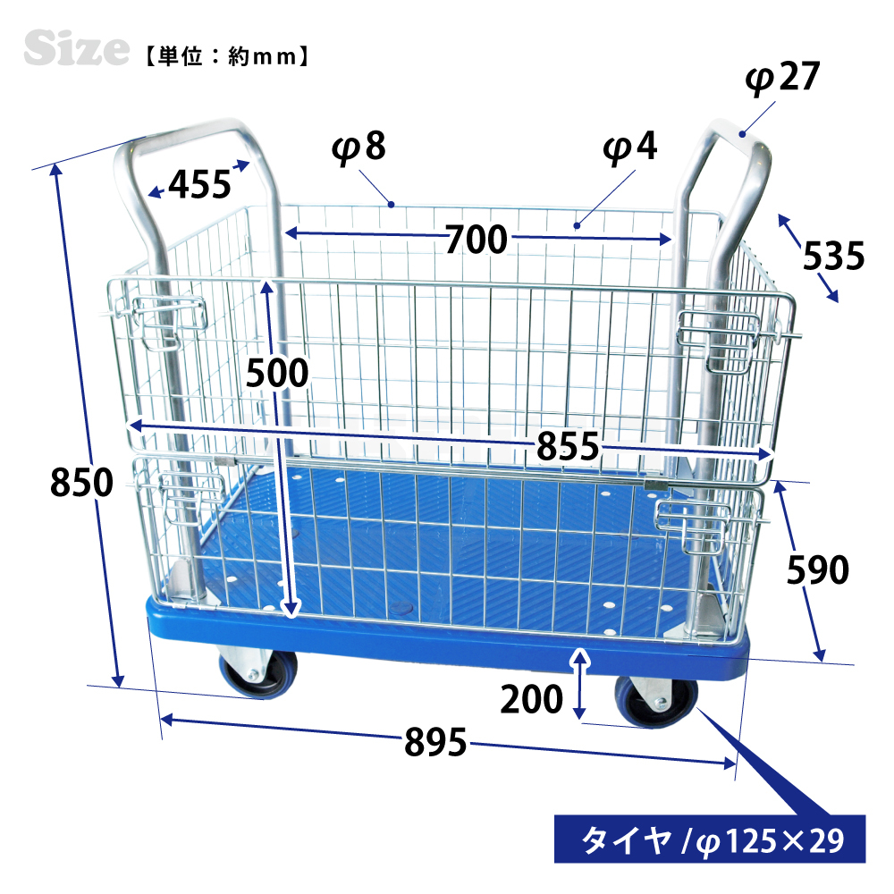 | 車輪 | エラスティックラバー車輪(サイズ:125φ×29mm) 固定車輪×2個/自在車輪×2個 |
