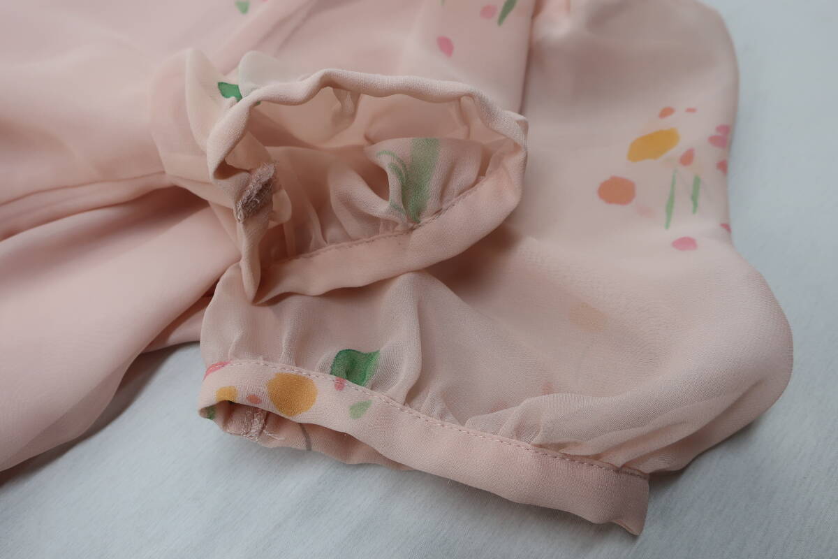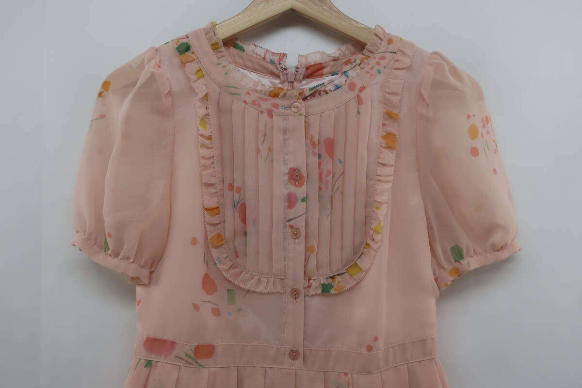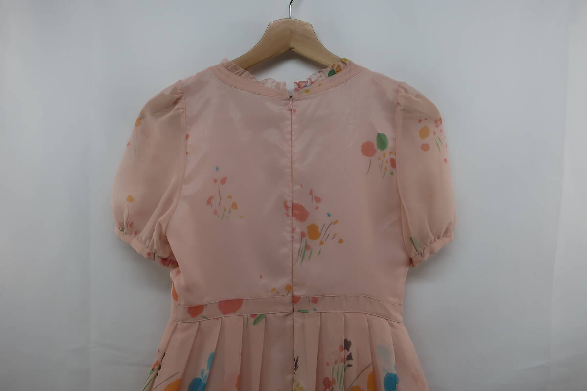 【送900円】933 JILLSTUART ジルスチュアート シフォンワンピース プリーツ シアー袖 ピンク 総柄 S フリル ポリエステル100%
