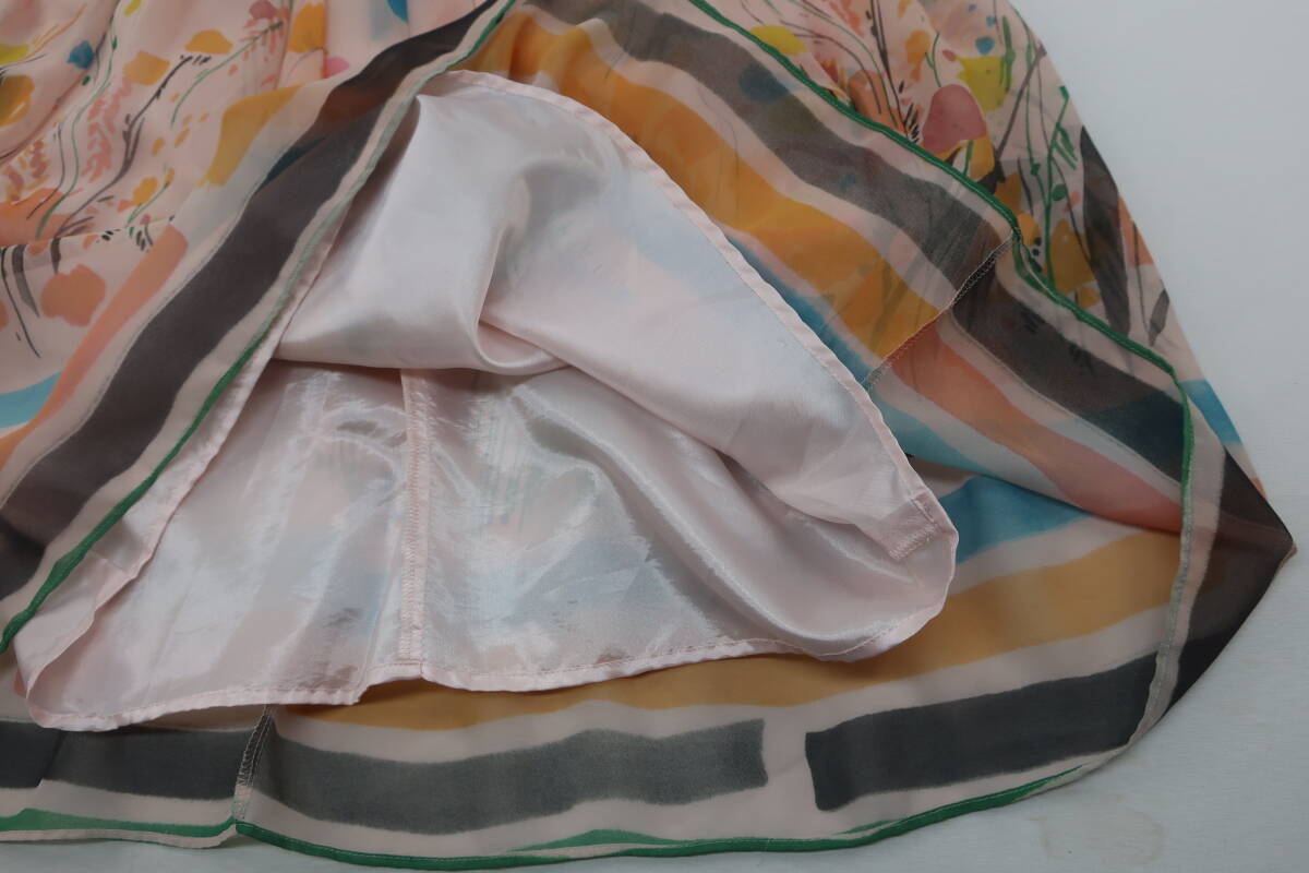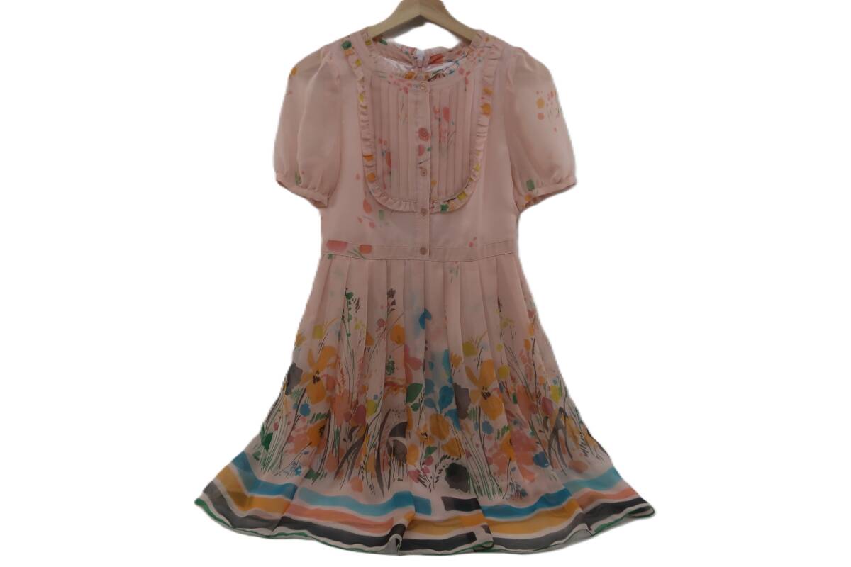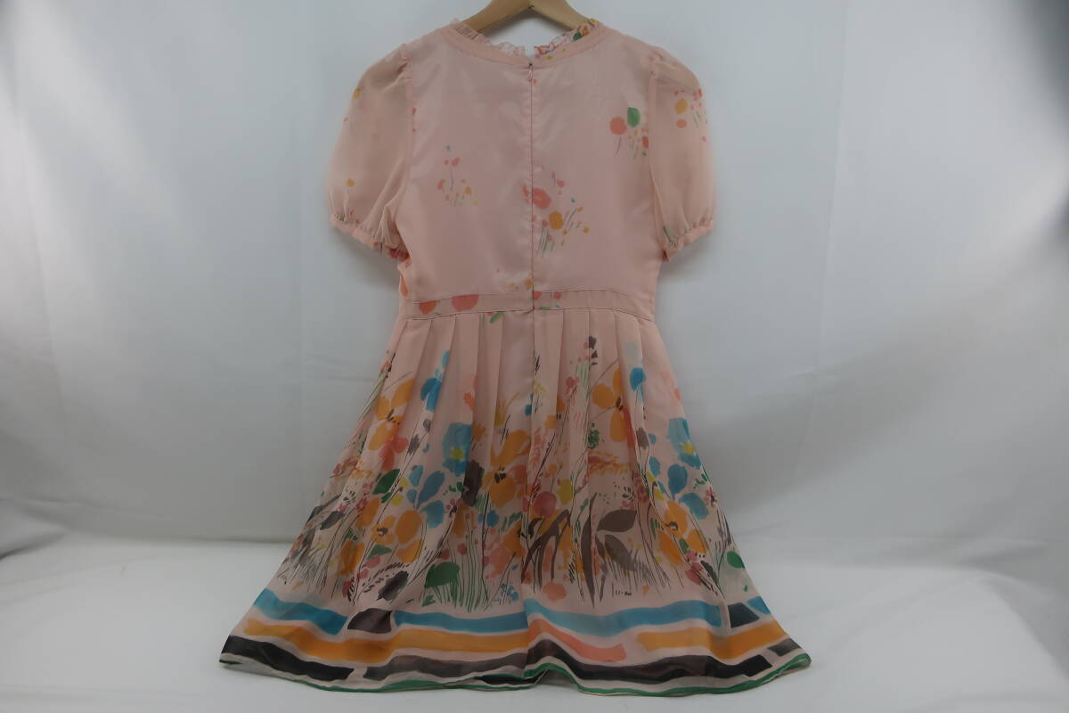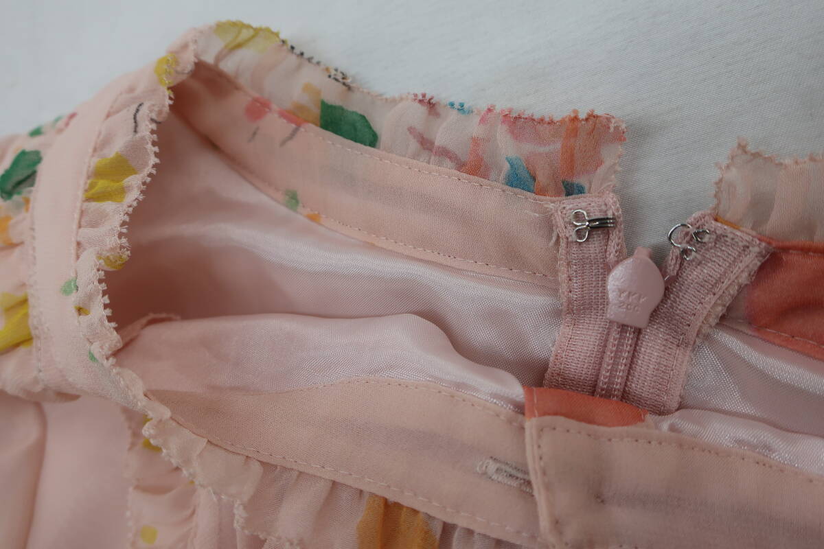 【送900円】933 JILLSTUART ジルスチュアート シフォンワンピース プリーツ シアー袖 ピンク 総柄 S フリル ポリエステル100%
