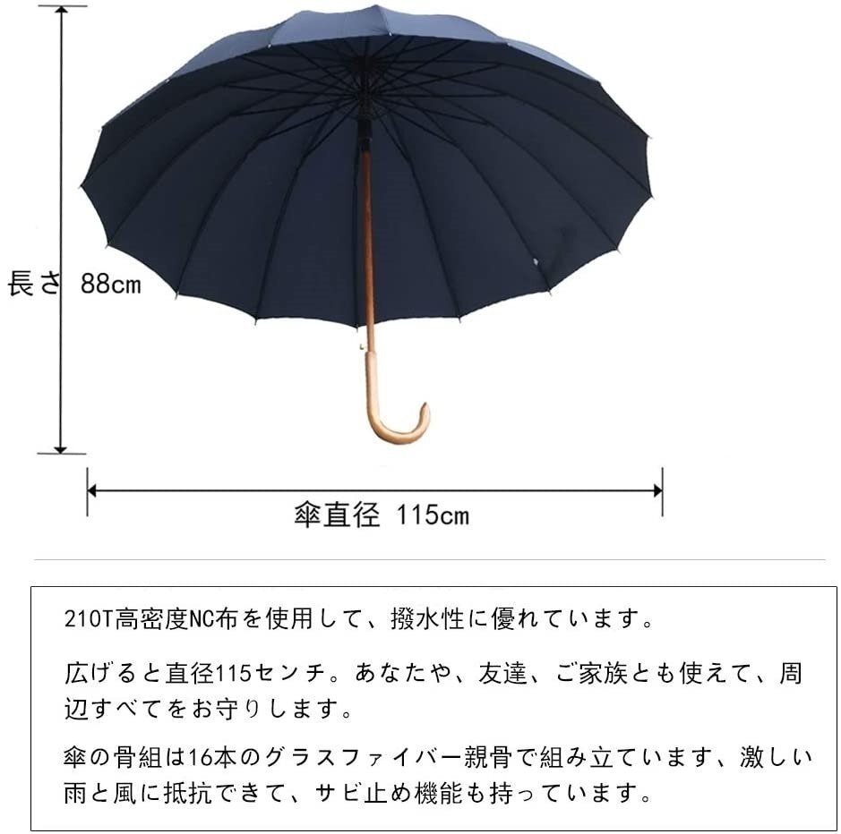 傘 長傘 雨傘 レディース メンズ 16本骨傘 木製手元 大きな傘 UVカット 軽い 耐風 撥水 グラスファイバー 梅雨対策 晴雨兼用