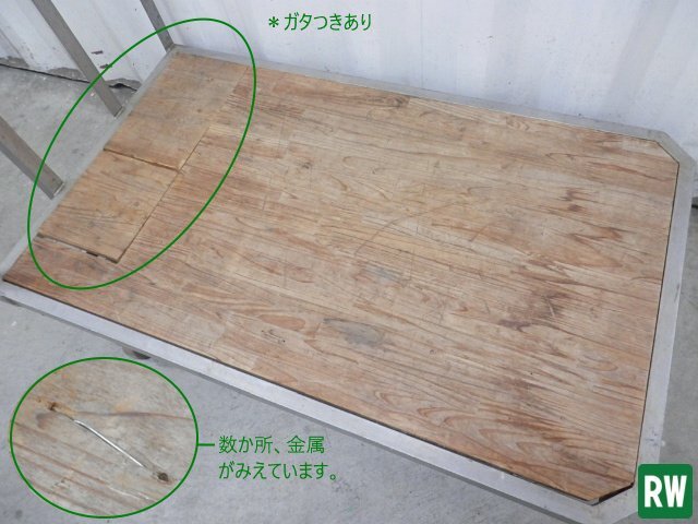 | 状態 | 中古品 スレ、キズ、サビ、ヒビ割れ、歪み、汚れ等ございます。 キャスター以外の金属は、ほぼステンレス(磁石反応なし)です。 木製部分取っ手付近の板2枚はガタつきます。隙間あり。金属が数か所みえています。 | |||||||||