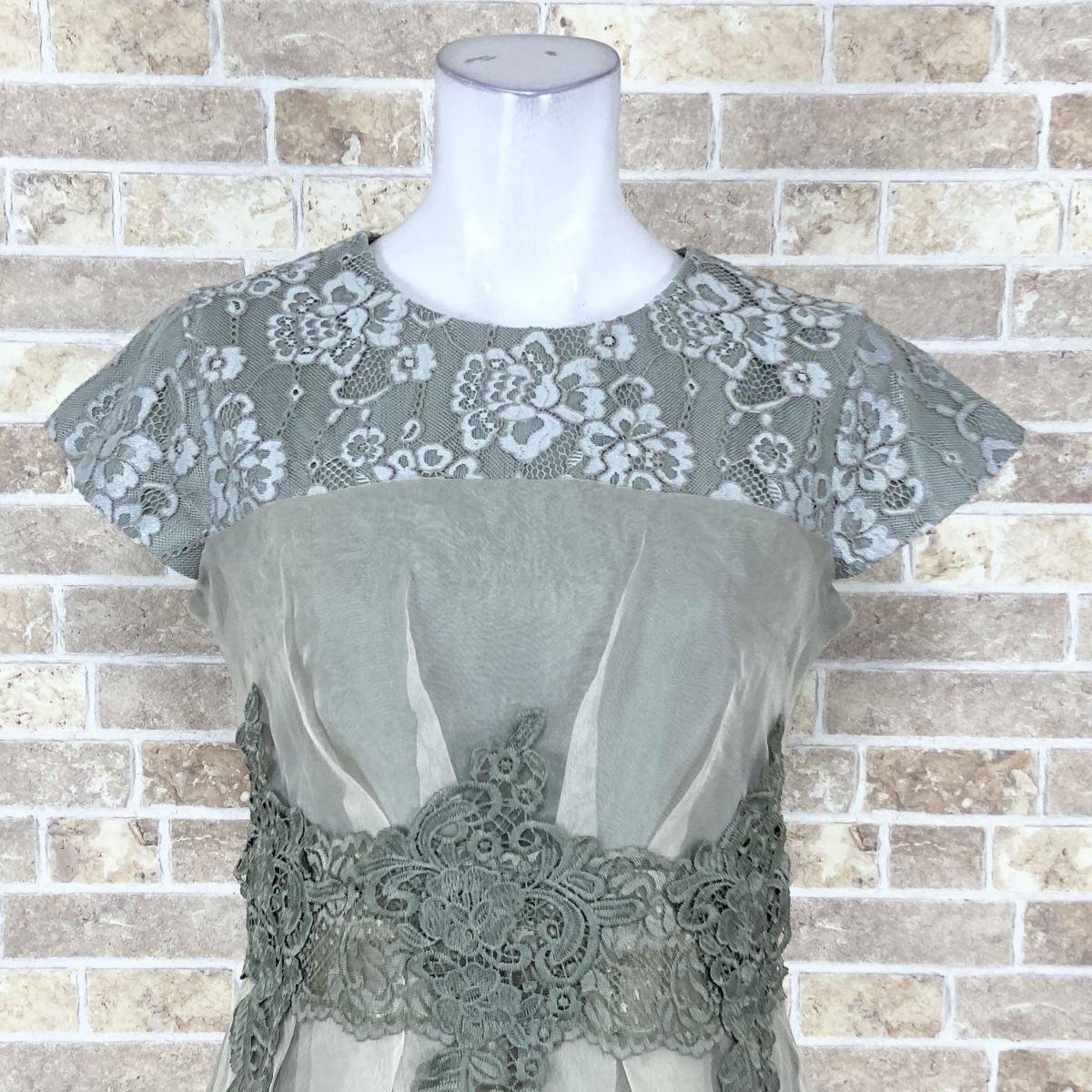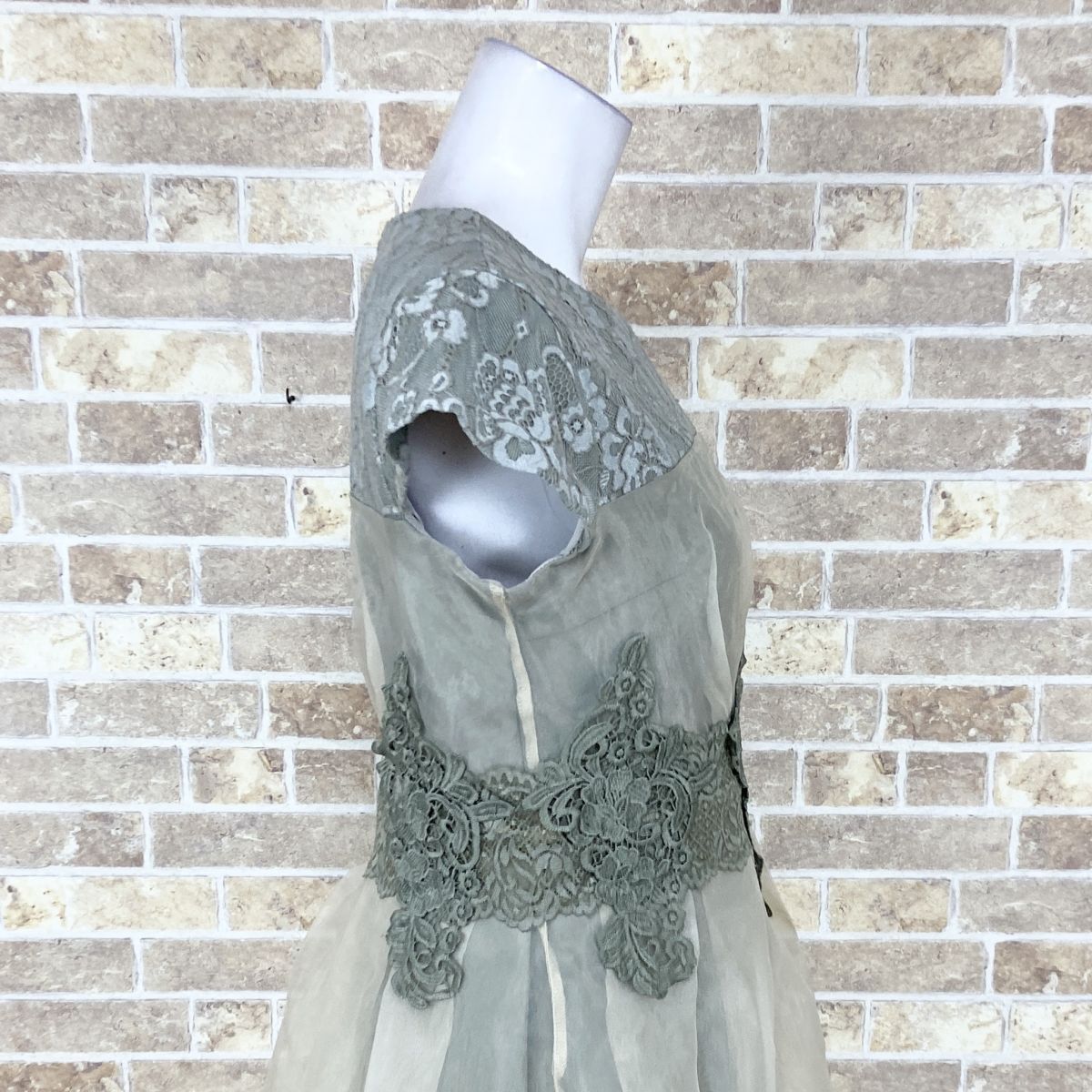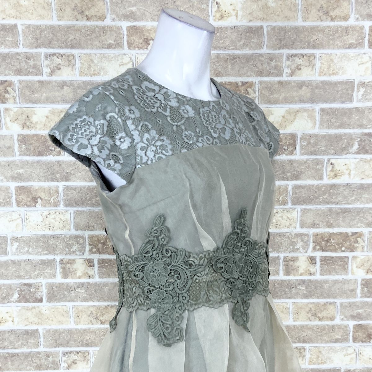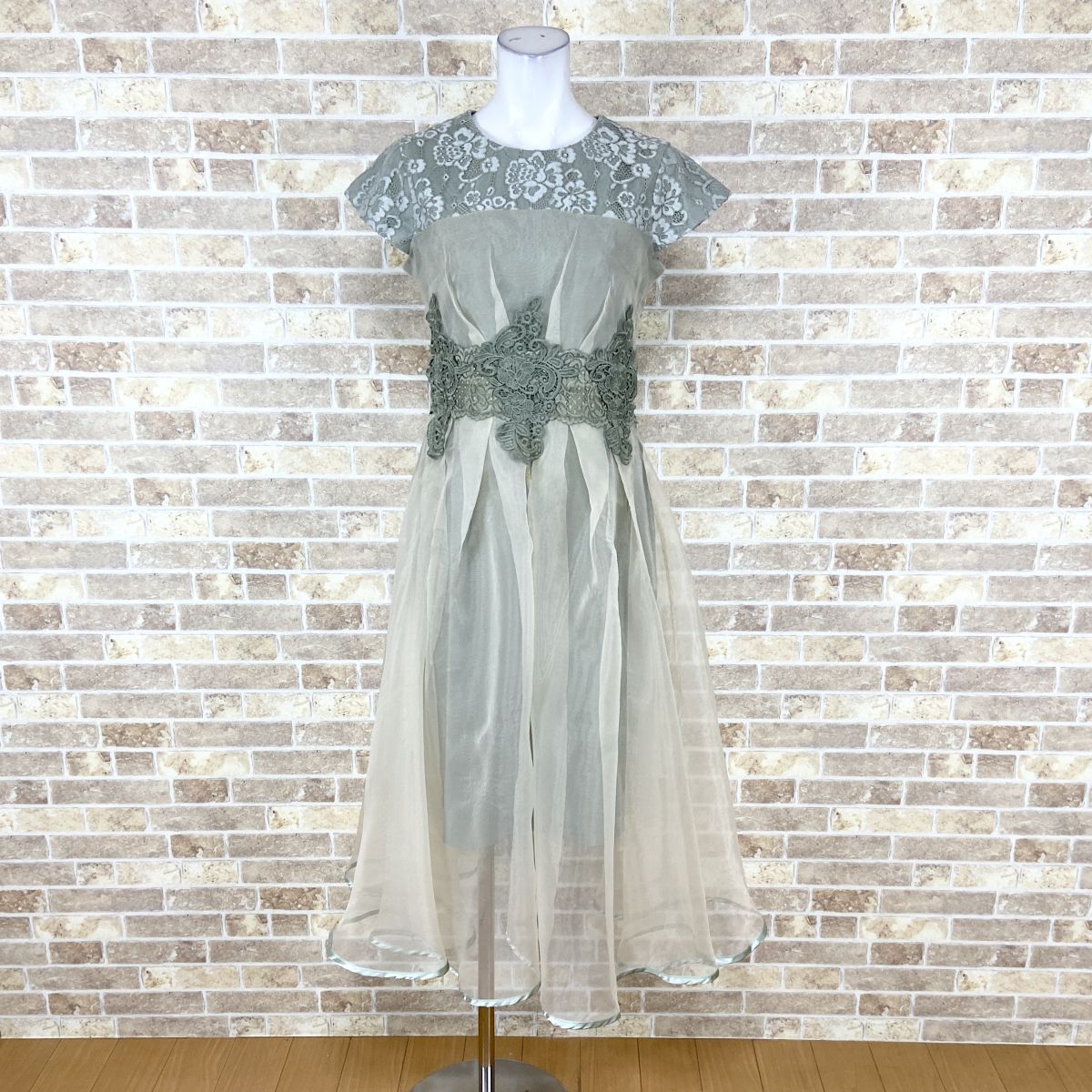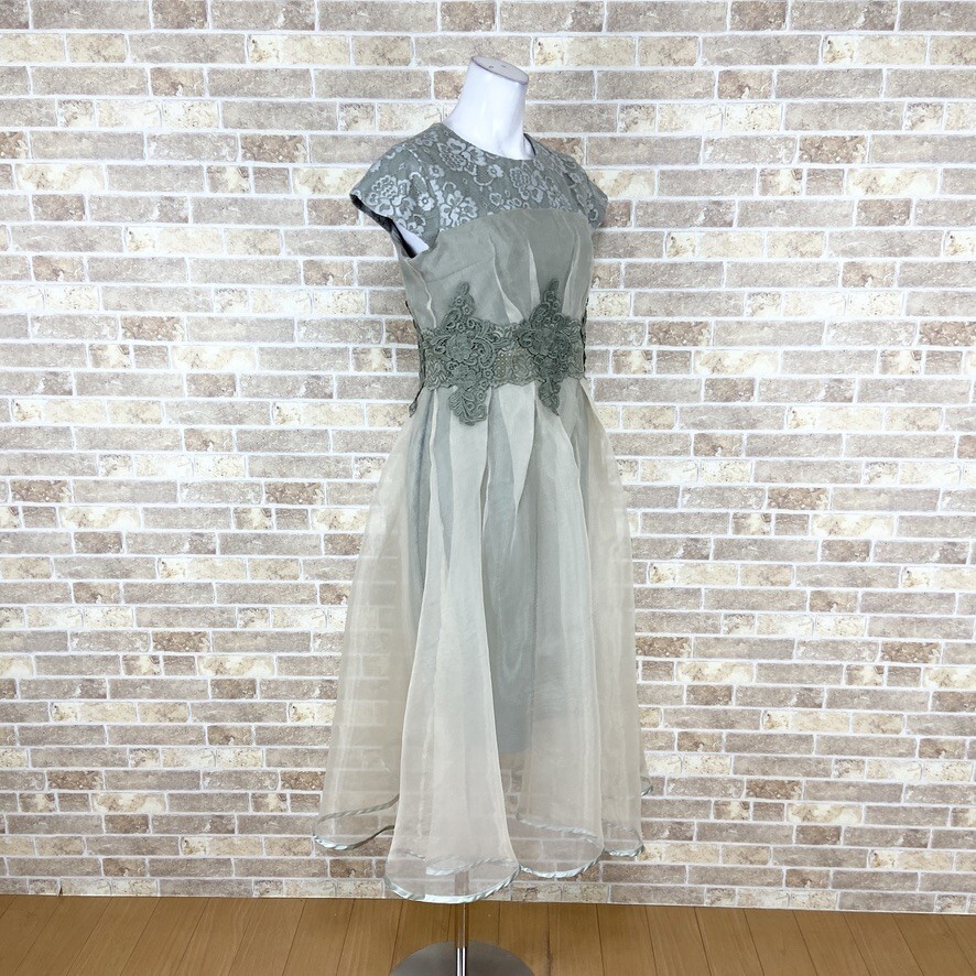 1円 ドレス RUIRUE ワンピース M 緑ベージュ系 カラードレス キャバドレ 発表会 イベント 中古13839