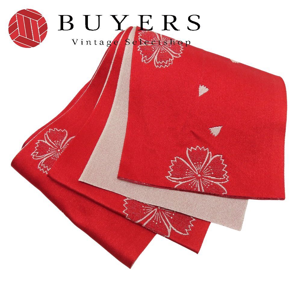 中古 浴衣帯 ポリエステル レッド 半幅帯 桜柄 リバーシブル 和装 呉服 和服 きもの レディース 女性
