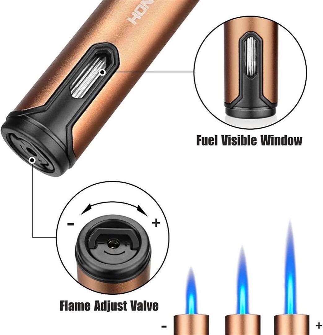 【火焔調節可能】底部に火焔調節装置があります。細かい作業にも扱い易い極細サイズからの炎の太さや長さを無段階に調整可能! 通常火焔高度は1.5-2cmです。 【安全スイッチ付き】安全スイッチ付き、火炎を固定しており安全性や見た目がいい。