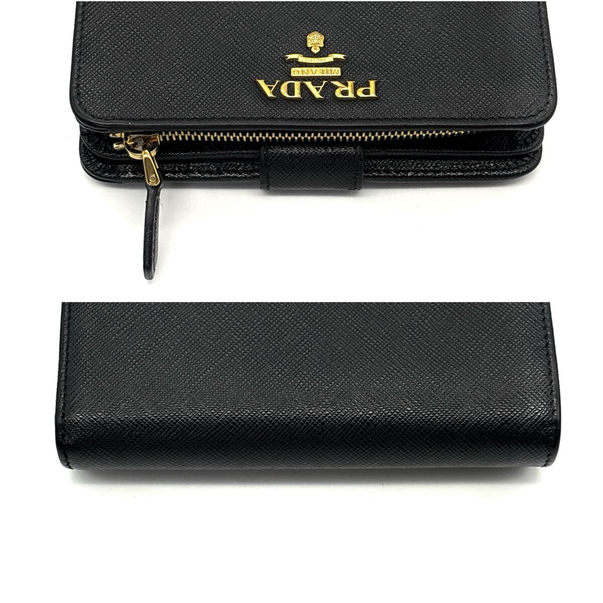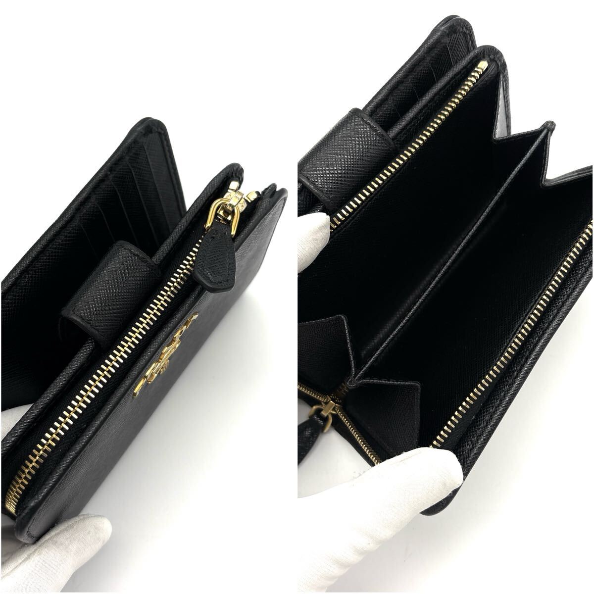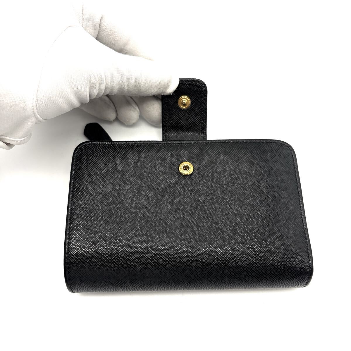 未使用級◆PRADA 二つ折り財布 サフィアーノレザー ゴールドロゴ ブラック