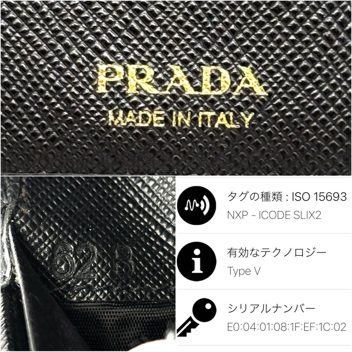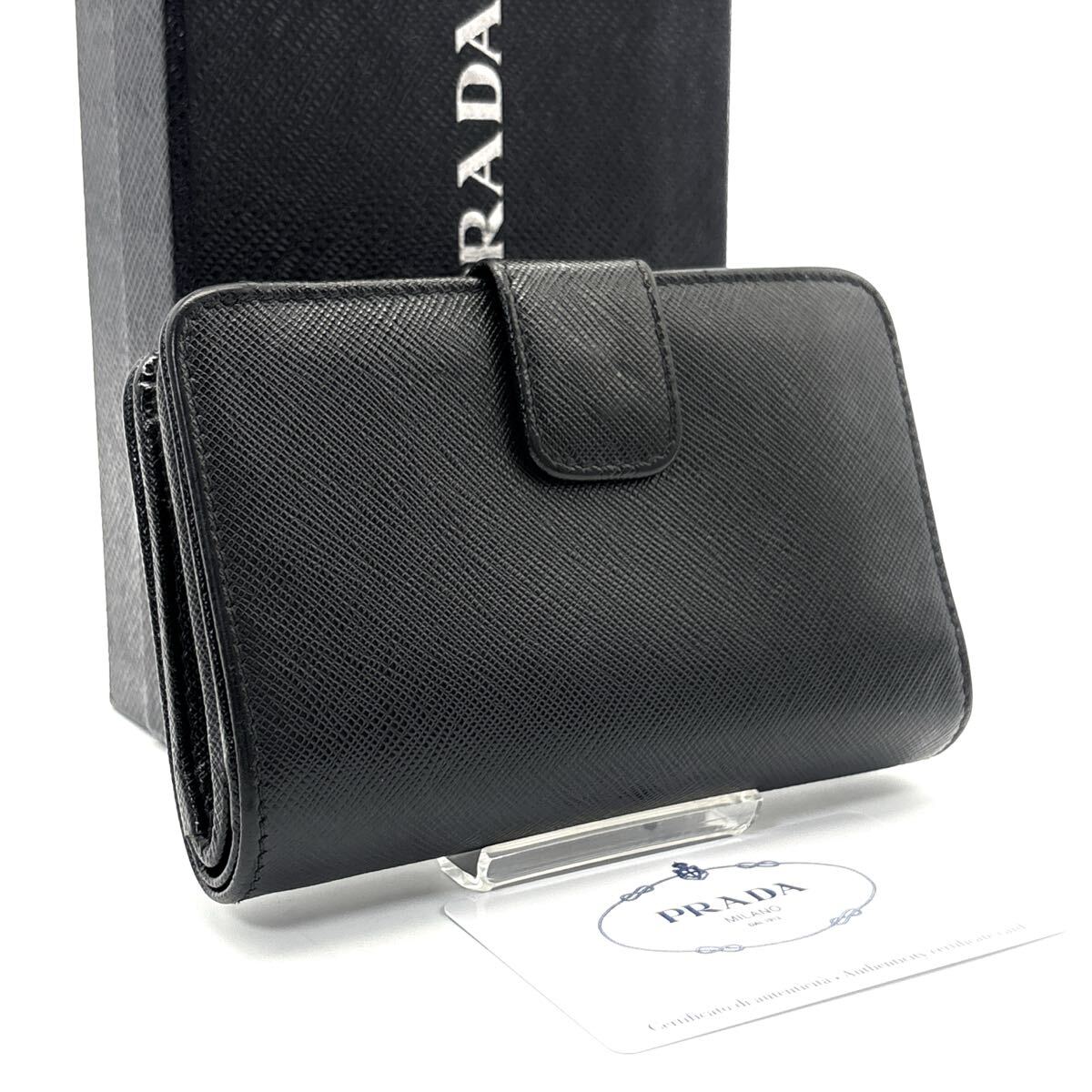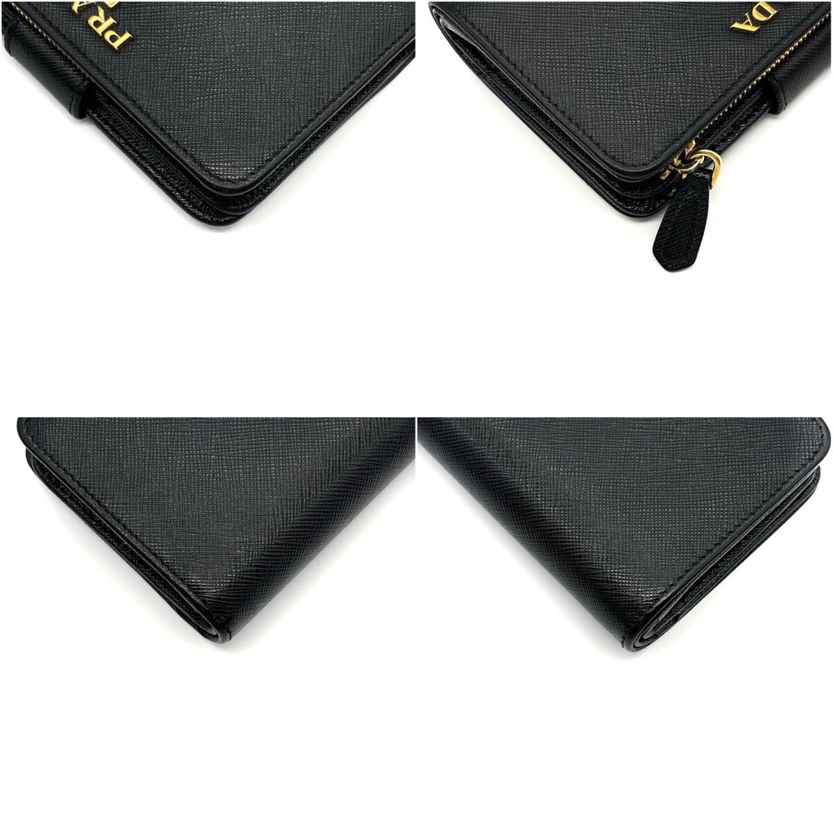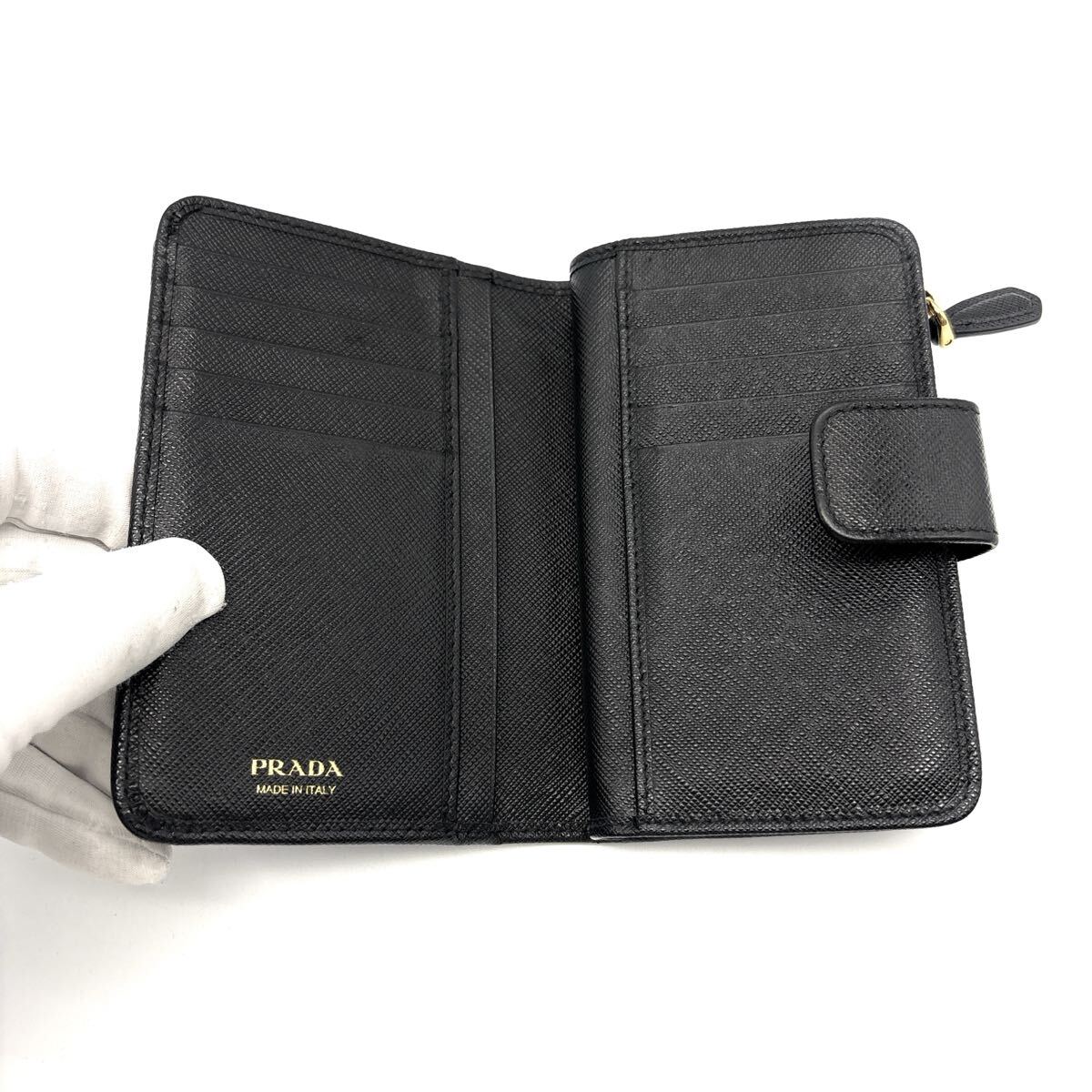 未使用級◆PRADA 二つ折り財布 サフィアーノレザー ゴールドロゴ ブラック