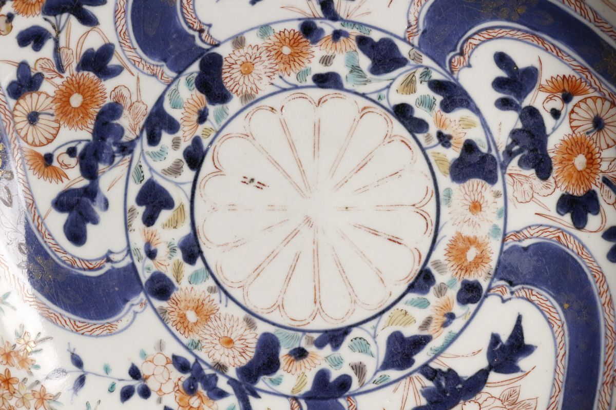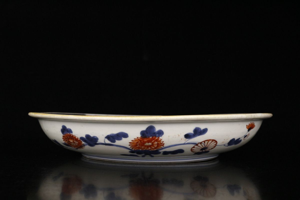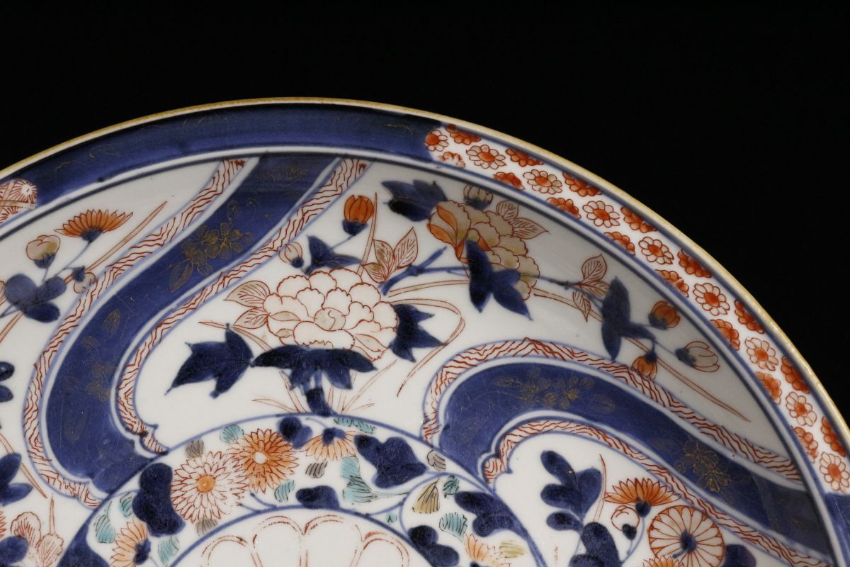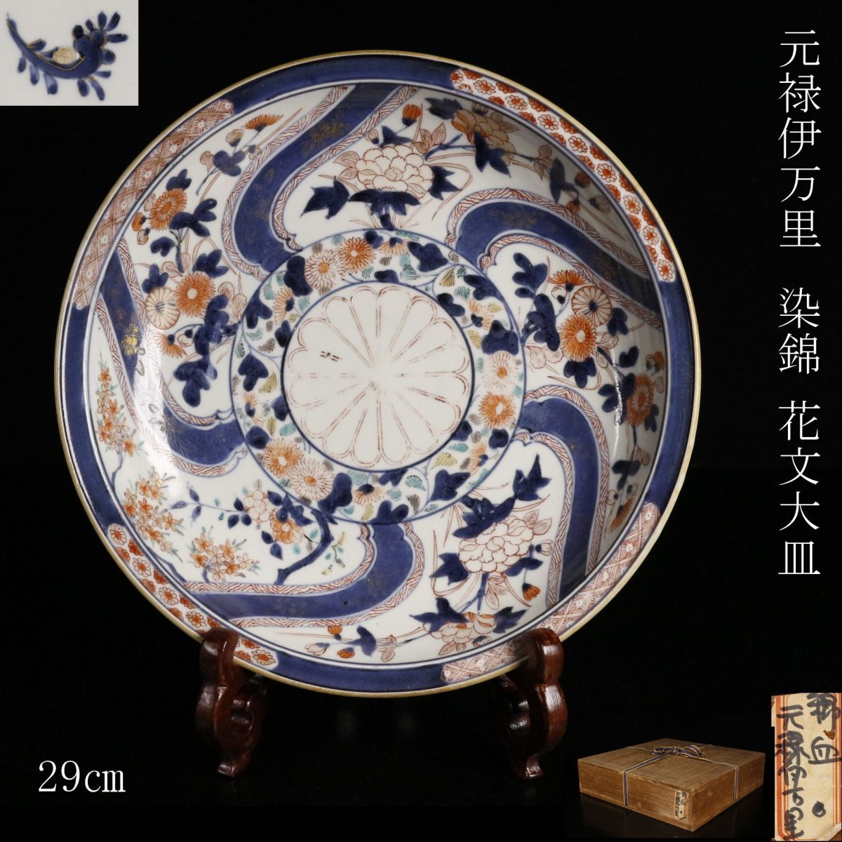 鮮やかな彩色が目を惹きく 元禄伊万里 染錦 花文大皿のご紹介です。 呉須の深い藍色に鮮やかな色絵で表現された 趣きある丁寧な花々の絵付けが魅力的なお品となっております。 気品がありながらも目を惹く華やかさは空間を華やかにしてくれます。 華やかな中に歴史を感じる逸品を、 この機会に是非、お手元にてご堪能下さい。