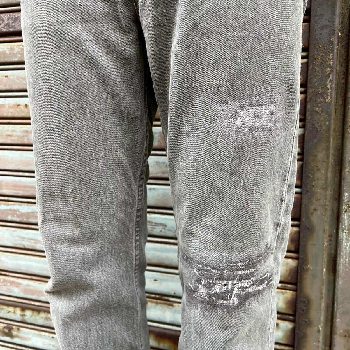 コンディション : 腿、膝、右バックポケット、股下にリペアがございます。ボタンフライ横に汚れがございますが、着用に問題あるダメージはございません。