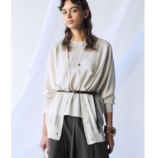 寒暖差がある日の温度調節や真夏の冷房対策にも役立ち、一枚羽織るとエレガントにまとめてくれます。