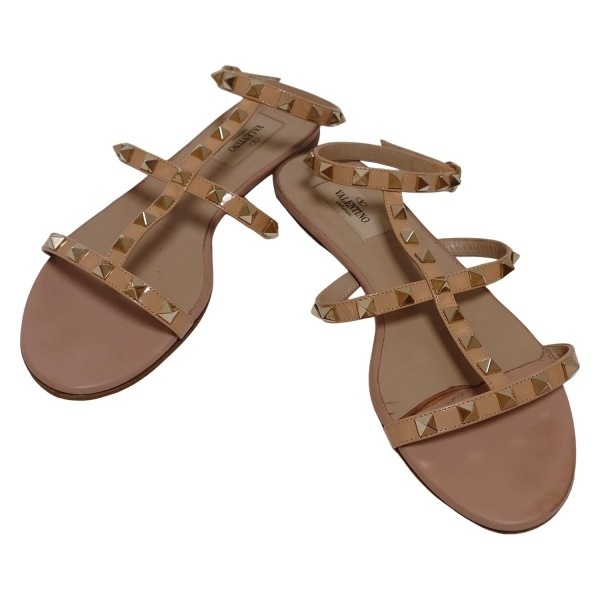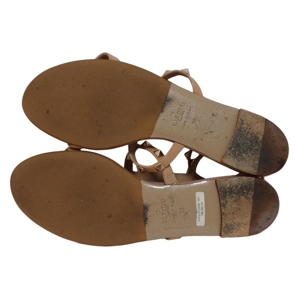バレンチノガラバーニ VALENTINOGARAVANI サンダル 38 - レザー ベージュ×ゴールド レディース スタッズ/アウトソール張替済 靴