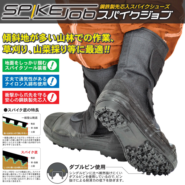 スパイクジョブ 23cm 鋼製先芯入 山林作業 傾斜地 作業靴 荘快堂 I-101