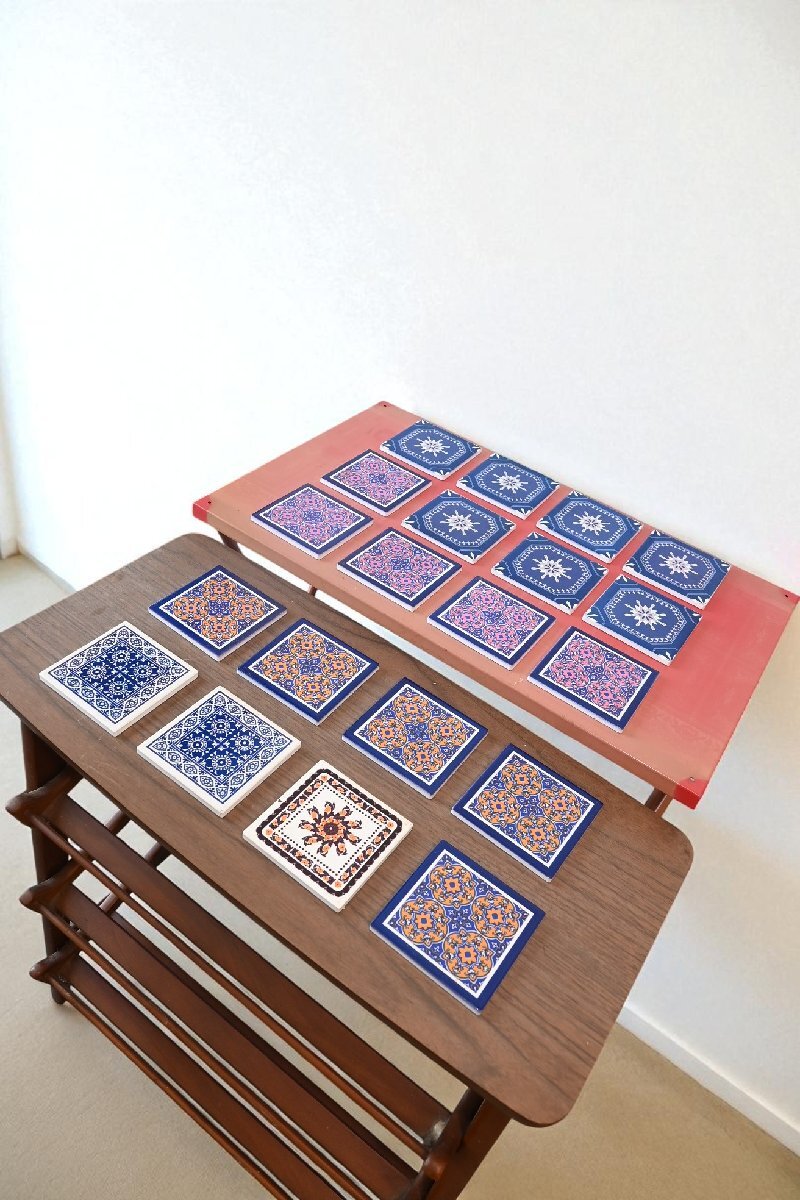 title:可愛いアラベスク柄 タイル 20点セット 9.3x9.3㎝ ピンク オレンジ ブルー DIY ヴィンテージ 古道具のgplus広島 2509i