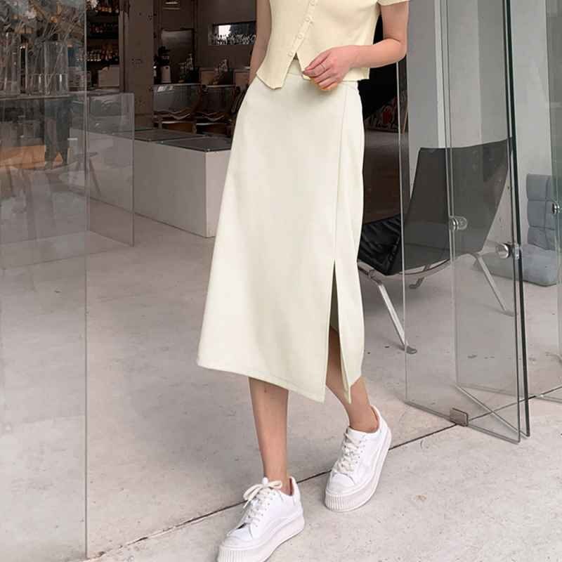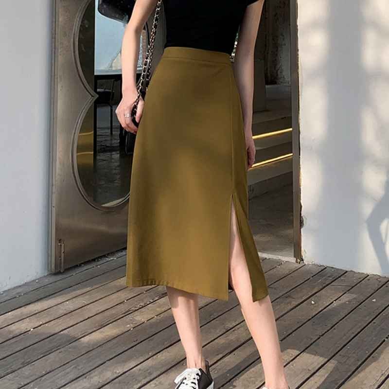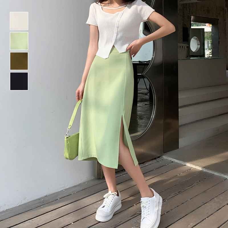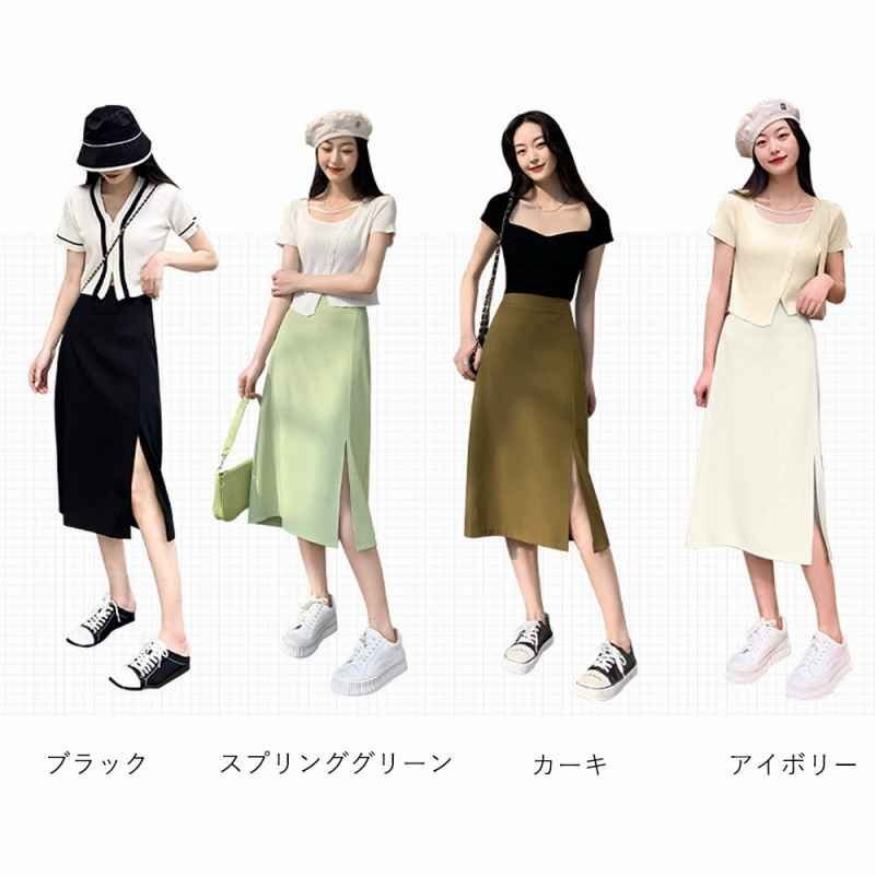 スリット入りで脚が綺麗に見える&歩きやすくなるAラインスカートです。