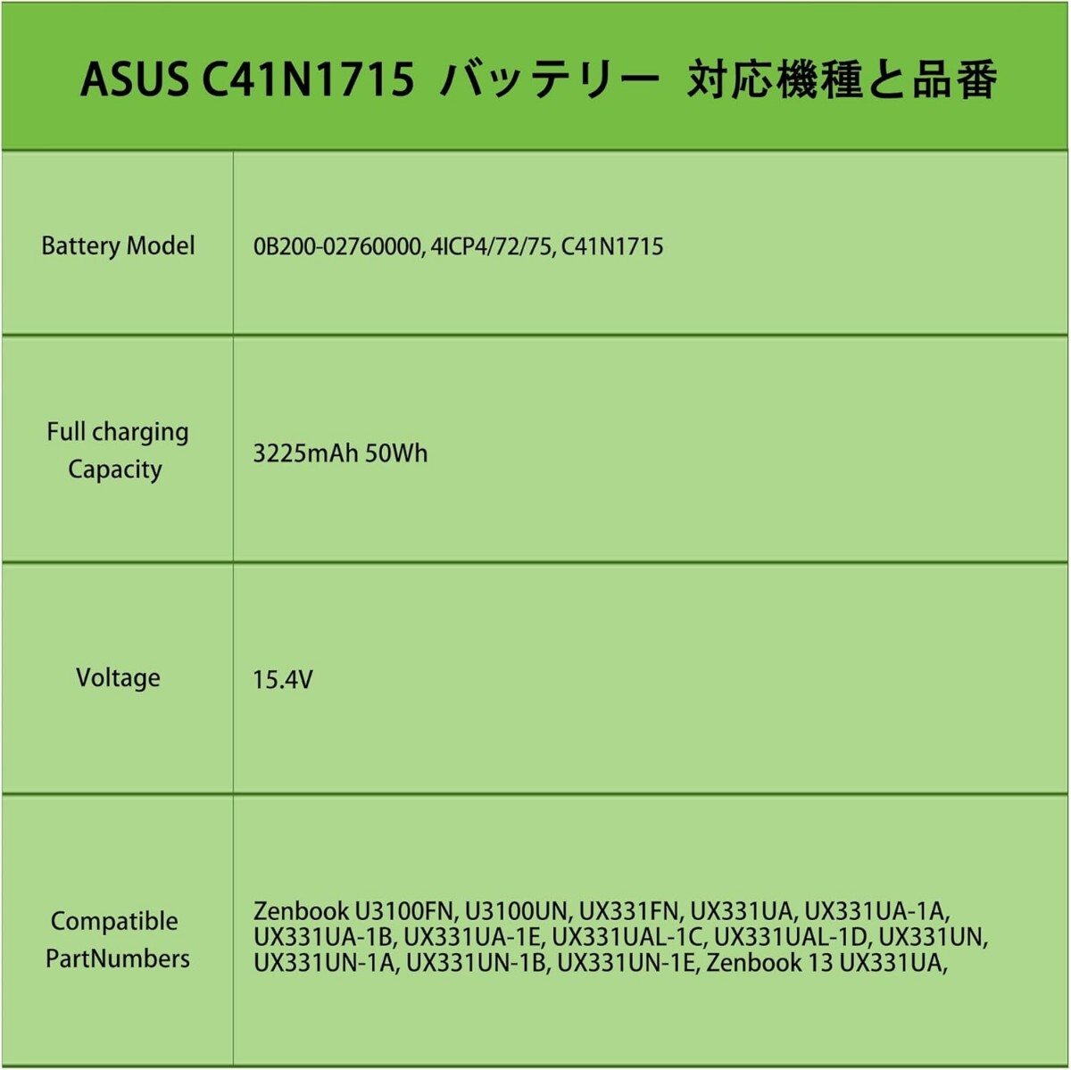For ASUS C41N1715【Zenbook U3100FN, U3100UN, UX331FN, UX331UA, UX331UA-1A, UX331UA-1B,シリーズ】【UX331UA-1E, UX331UAL-1C, UX331UAL-1D, UX331UN, UX331UN-1Aシリーズ】