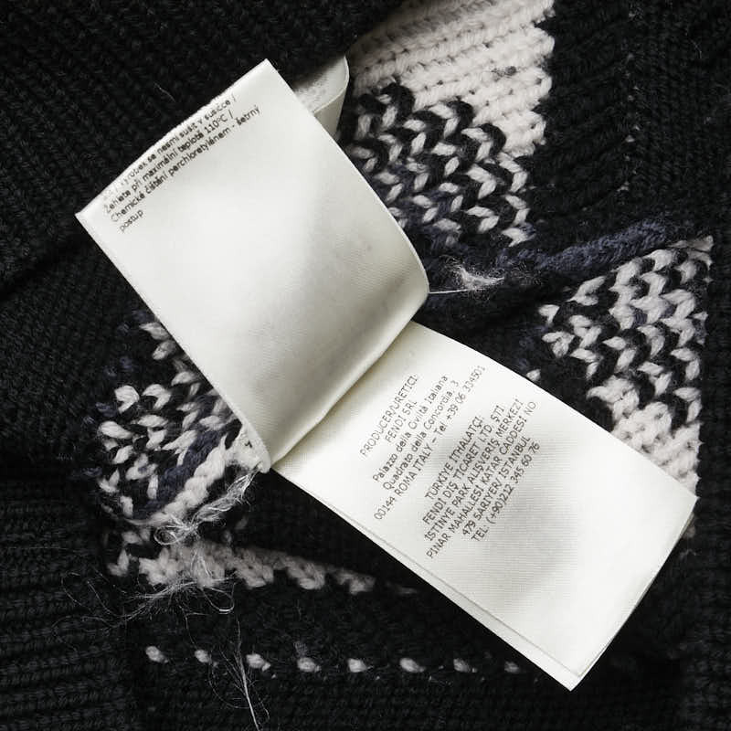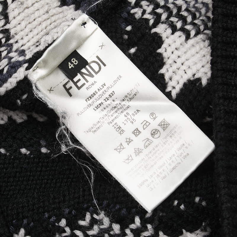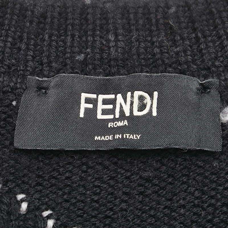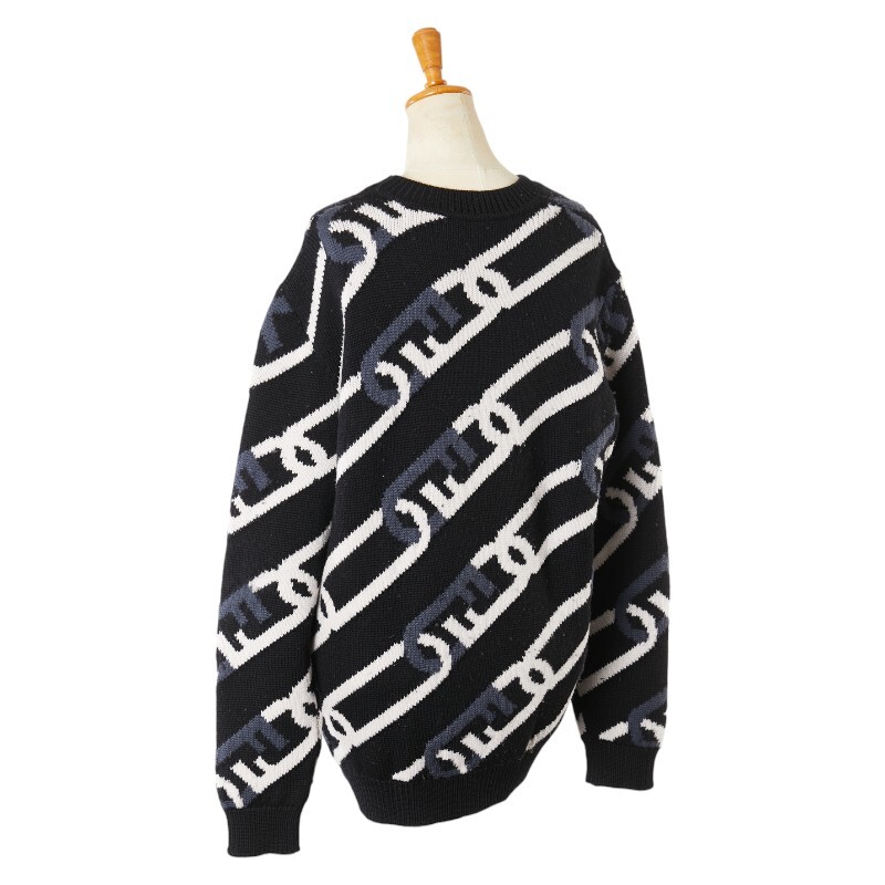 フェンディ FF チェーンモチーフ ニット セーター サイズ:48 FZX085 AL3V ブラック ホワイト グレー ウール メンズ FENDI 【中古】
