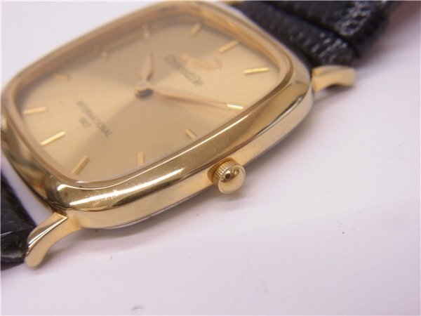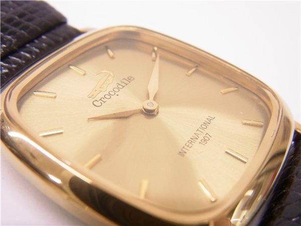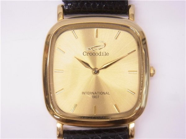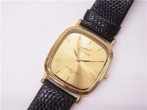 ◎ Crocodile ◎ クロコダイル メンズクォーツ時計 スクエア 2針 ゴールド文字盤 電池交換済み 稼働品 ◎USED