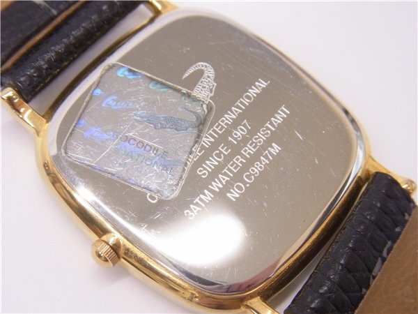 ◎ Crocodile ◎ クロコダイル C9847M メンズクォーツ時計 スクエア 2針 ゴールド文字盤 電池交換済み 稼働品 ◎USED