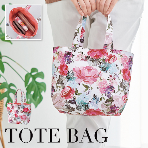 アロマーヌ・トートバッグ かわいい 水彩画タッチ カラフルな花々のおしゃれなプリント
