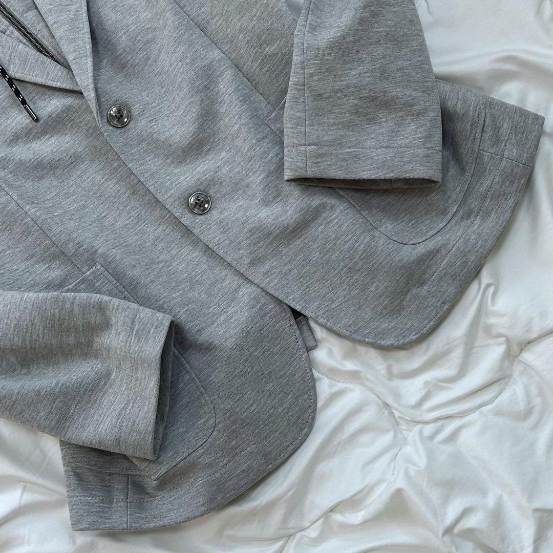 軽やかな着心地のジャージー素材を使ったジャケット。エクストラスリムフィットで、切りっぱなしのようなローエッジ仕上げにすることで、ジャケットにカジュアル感をプラスしています。クリーンなボトムを合わせればビジネスシーンにも使え、同素材のトラックパンツやデニムを合わせてカジュアルダウンさせれば、週末のリラックススタイルにも対応可能です。