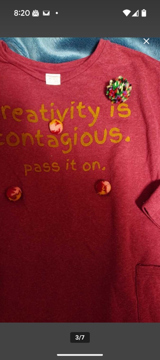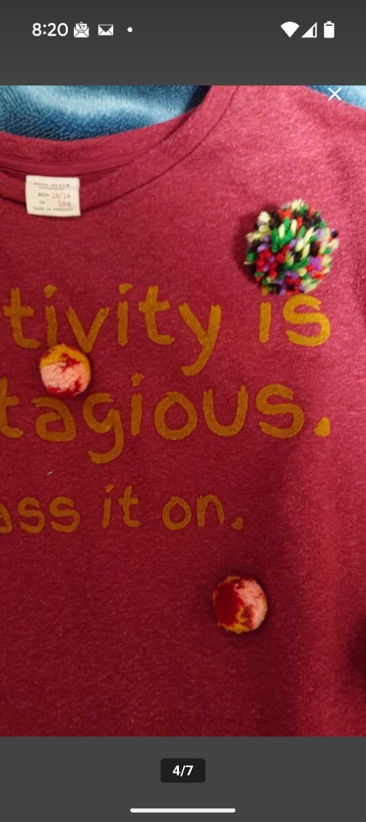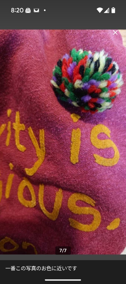 写真は赤っぽく写っていますが、お色はエンジ色です。毛糸のボンボンが所々ついていて、素敵な商品です。両サイドに大きくポケットが付いていて、重宝します。