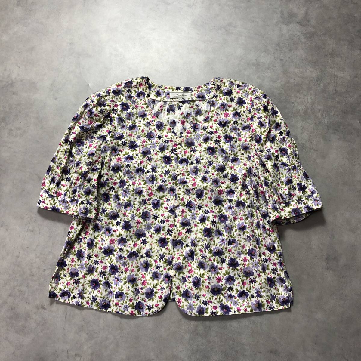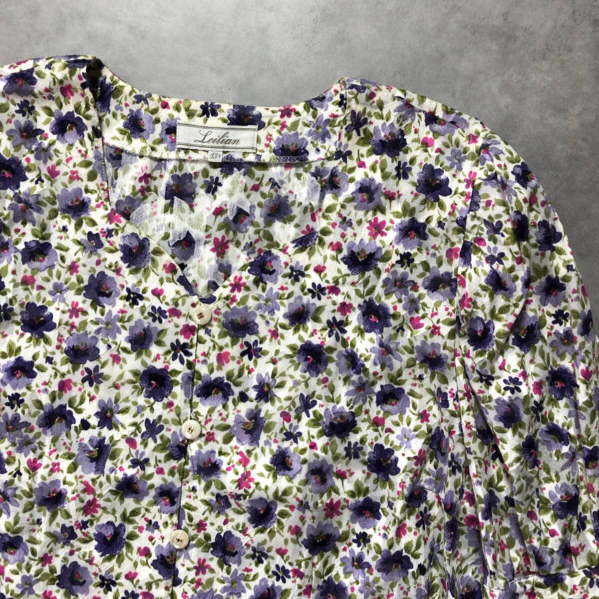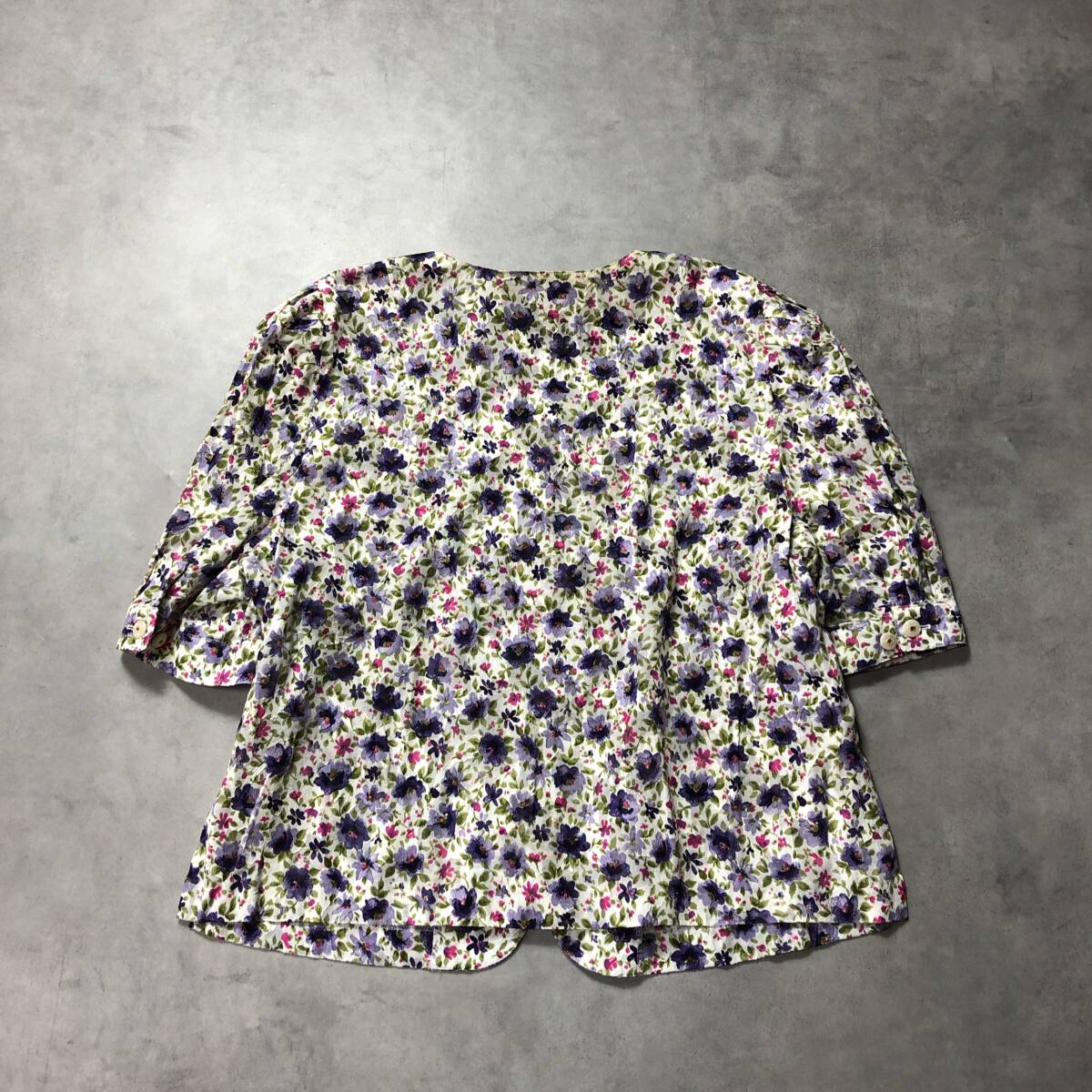 商品名 :WH065● Leilian:大きいサイズ 花柄ノーカラー七分袖シャツジャケット ●13● 白/紫/ピンク/緑 日本製 レリアン