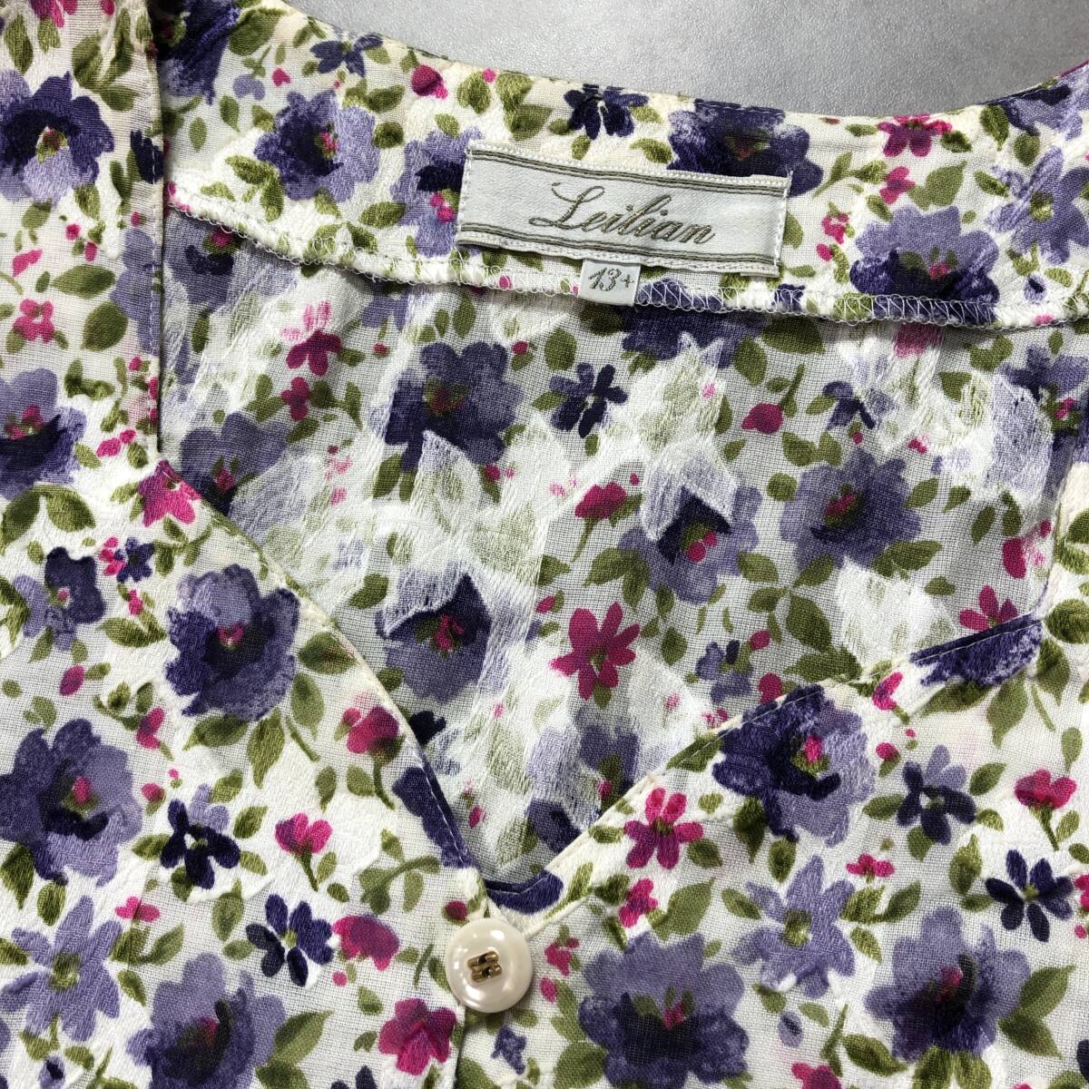 WH065● Leilian:大きいサイズ 花柄ノーカラー七分袖シャツジャケット ●13● 白/紫/ピンク/緑 日本製 レリアン