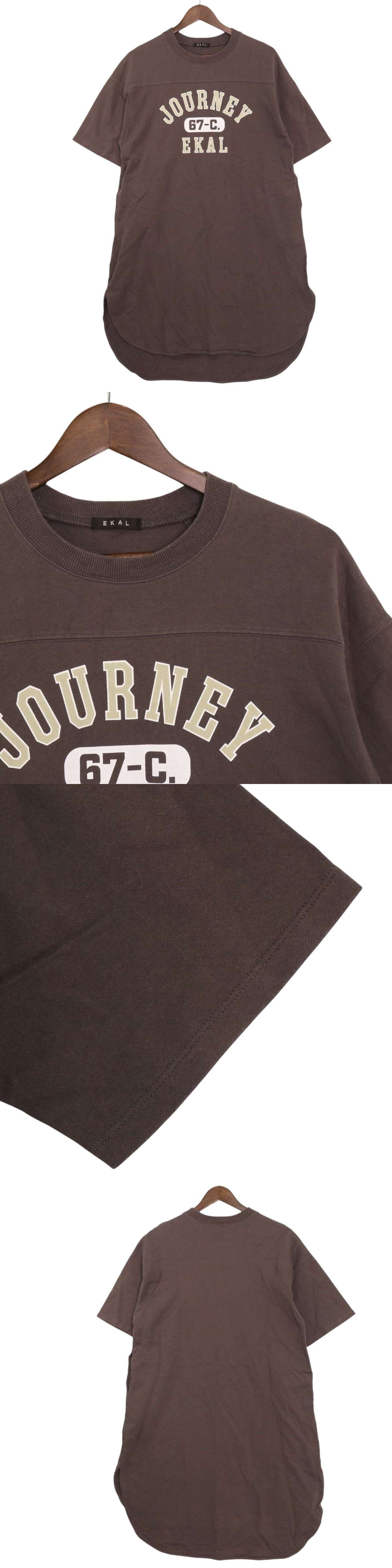 EKAL エカル 春夏 JOURNEY ロゴ プリント★ 半袖 ロング カットソー Tシャツ チュニック Sz.One レディース