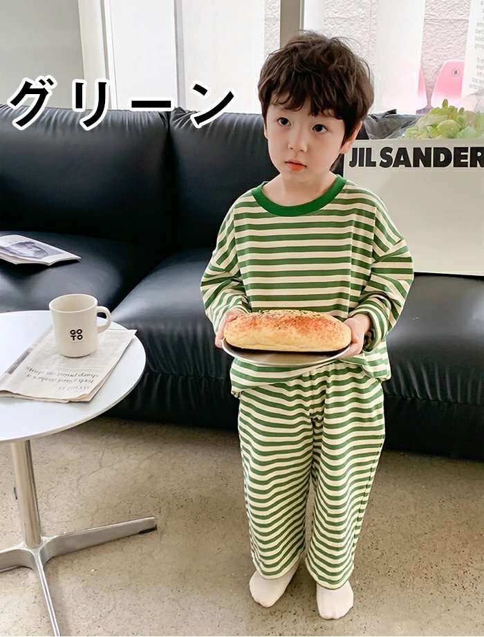 キッズ ルームウェア 子供 パジャマ セット ラウンドネック プルオーバー シンプル 無地 子供 長袖 長ズボン ベビー ☆2色/90~150選択/1点