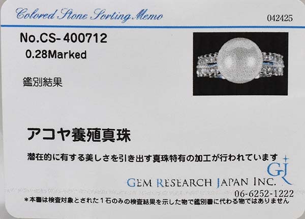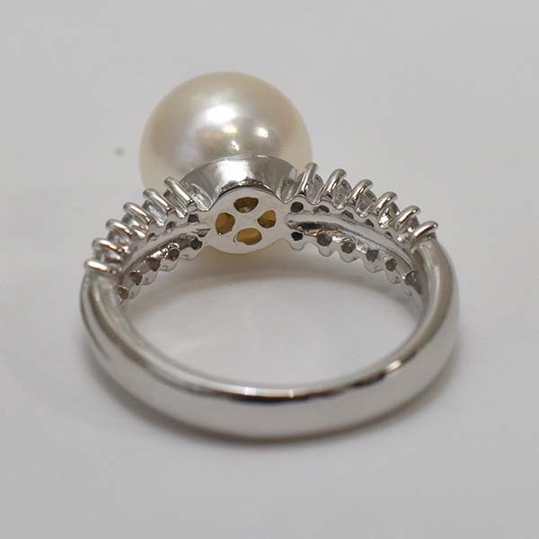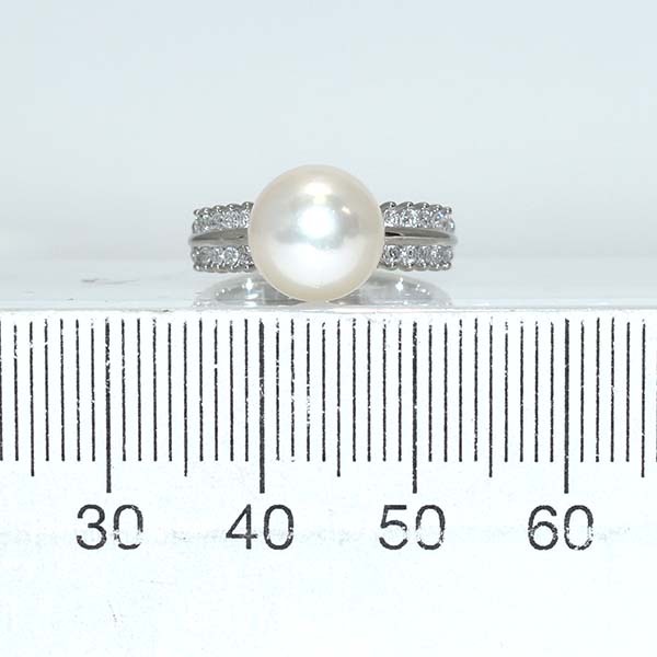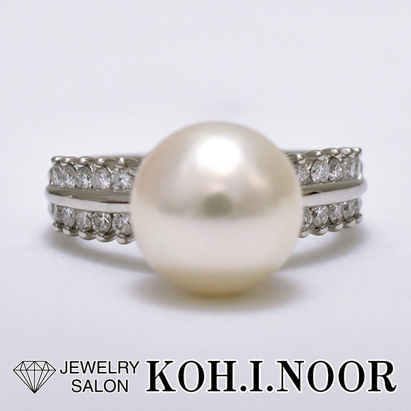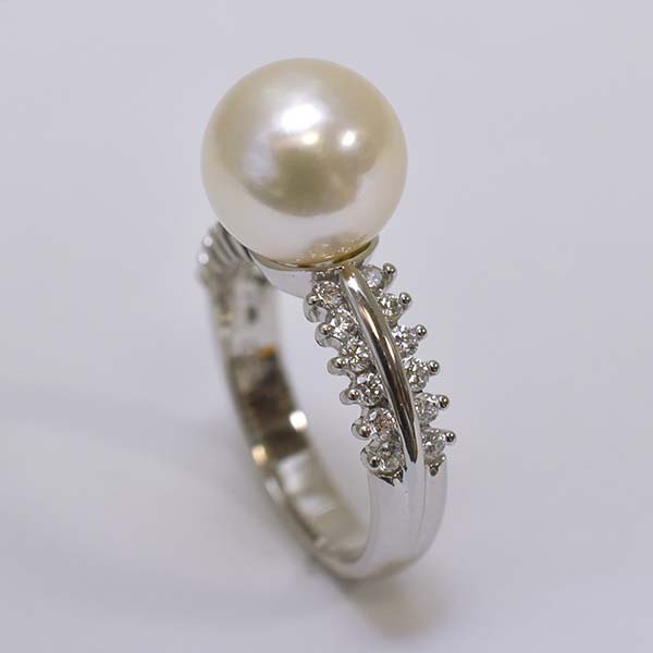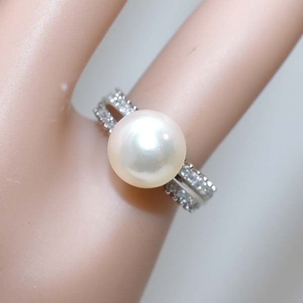 アコヤパールをメインにしたプラチナ製のファッションリング。