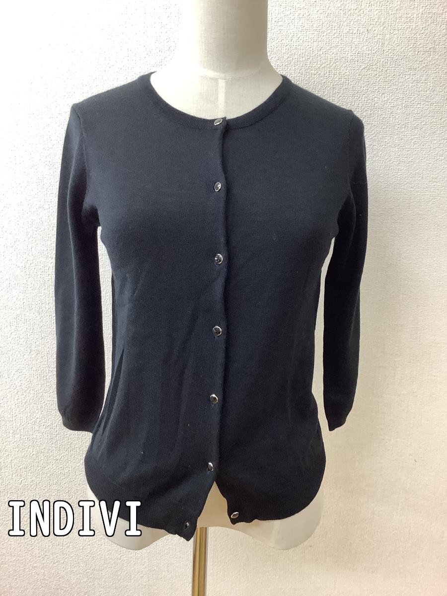 管理番号:10^137904 インディヴィ (INDIVI) 黒ニットカーディガン 表示サイズ:38 実寸(参考)