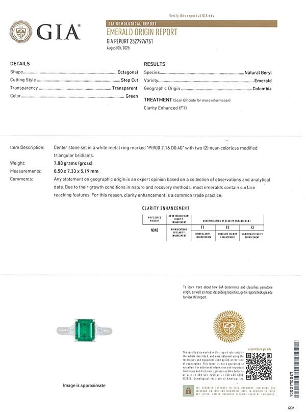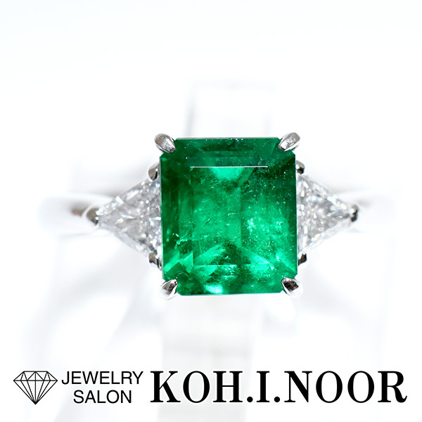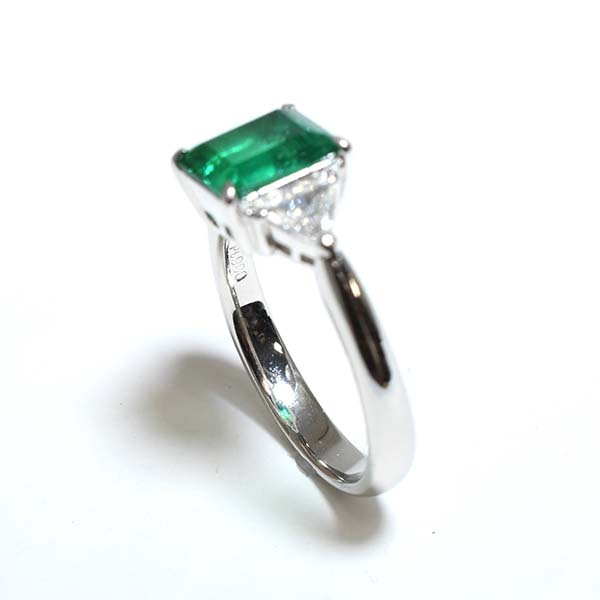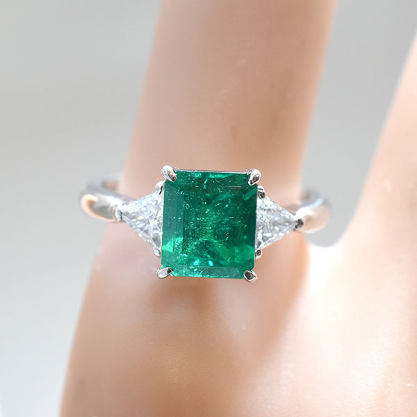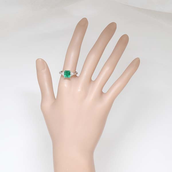 GIA鑑別付きコロンビア産エメラルドをメインにしたプラチナ製のファッションリング。
