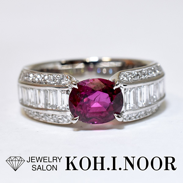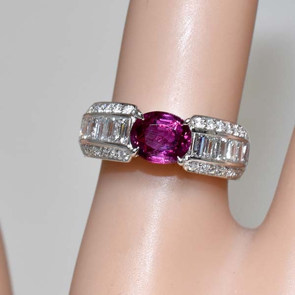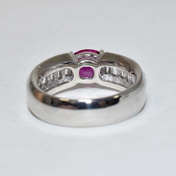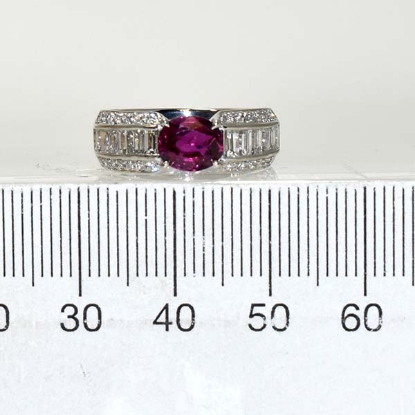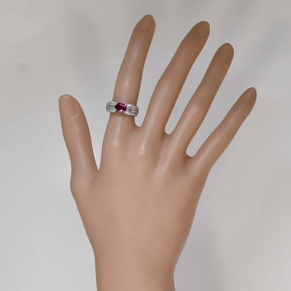 ルビーをメインにしたプラチナ製のファッションリング。