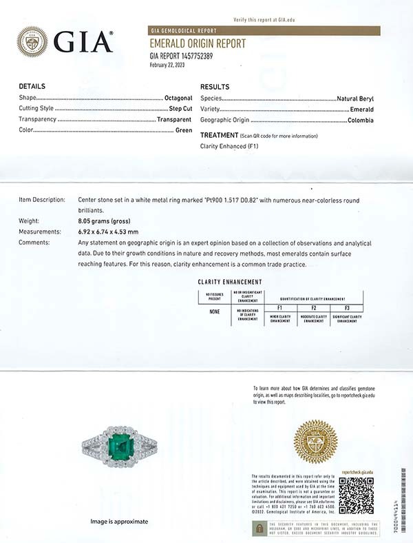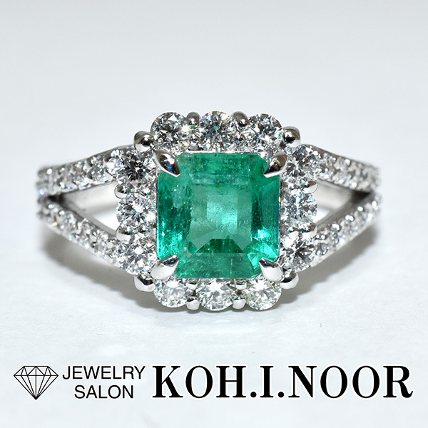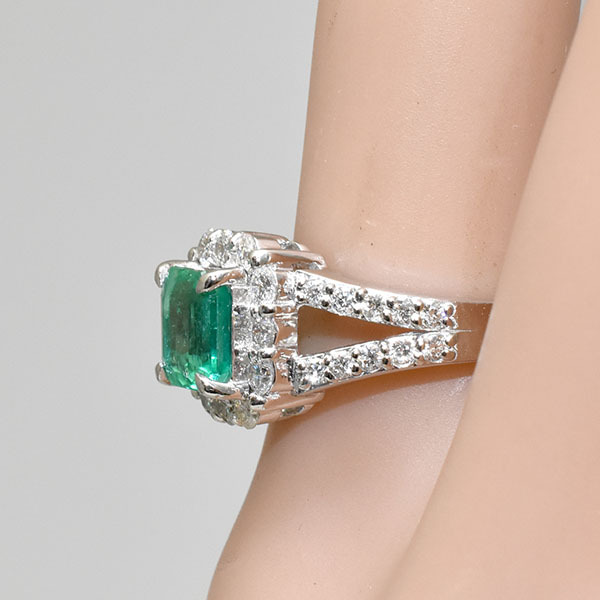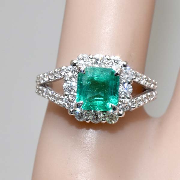 GIA鑑別書つきコロンビア産エメラルドをメインにしたプラチナ製のファッションリング。