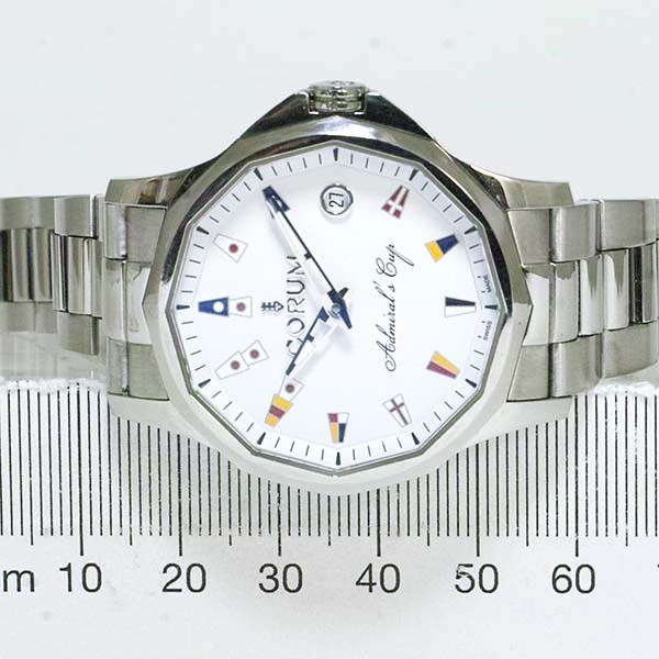 ホワイト文字盤にカラフルな海洋信号旗インデックスのアドミラルズカップ。38mmのボーイズサイズ。