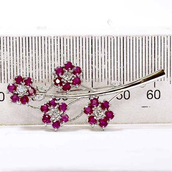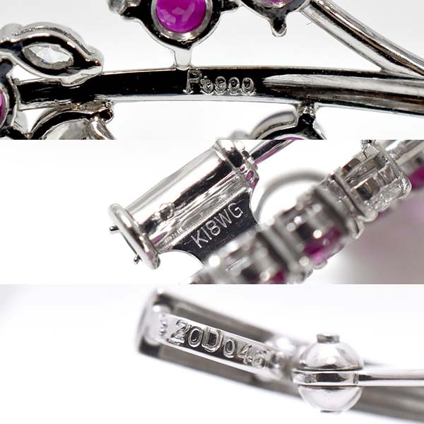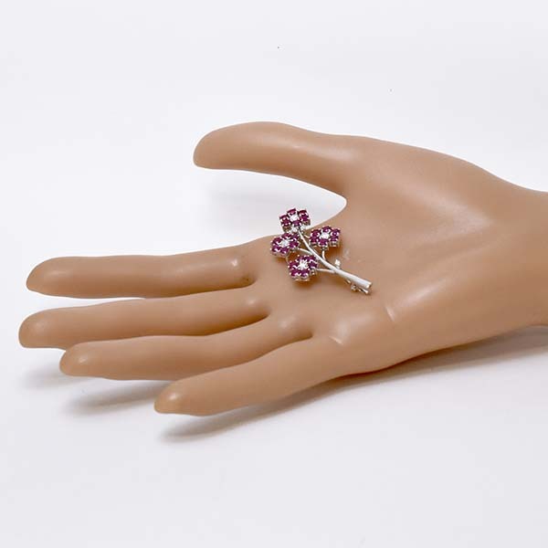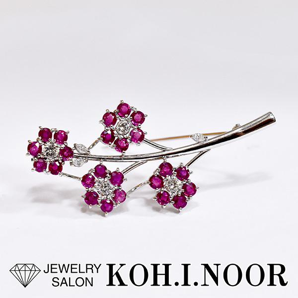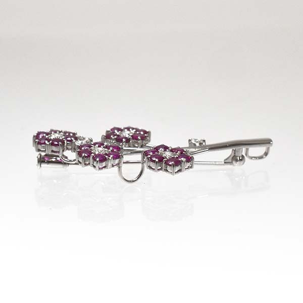 ピンクサファイアを花に見立ててセットしたプラチナ製のペンダント兼ブローチ。
