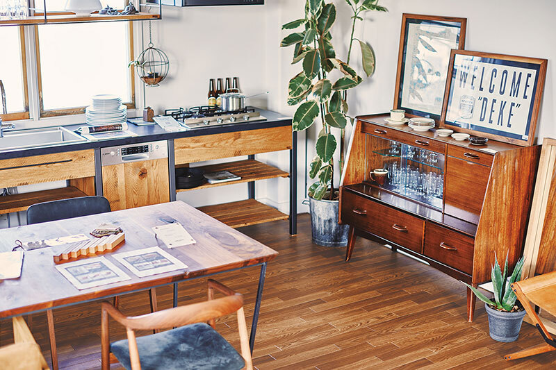細幅のオークはアイアンの家具と合わせてインダストリアルな空間に。