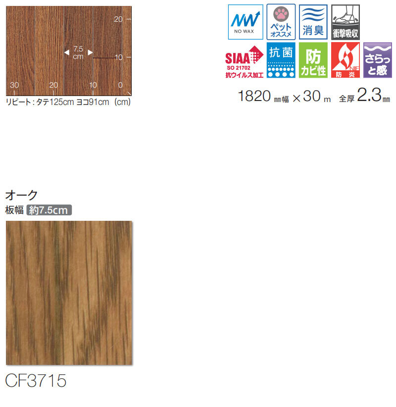 床シート 送料無料 クッションフロア 衝撃吸収、撥水、抗菌、抗ウイルス、防カビ、さらっと感 東リのCFシート-P NW CF3715(長さ1m)