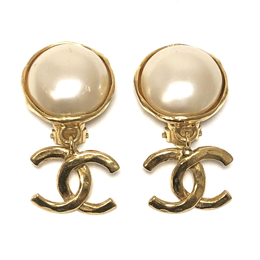 *CHANEL 94A ココマーク フェイクパール イヤリング クリップ式 耳飾り 両耳 ゴールドカラー アクセサリー ヴィンテージ シャネル |