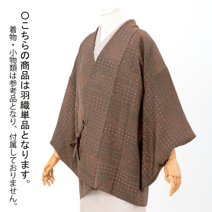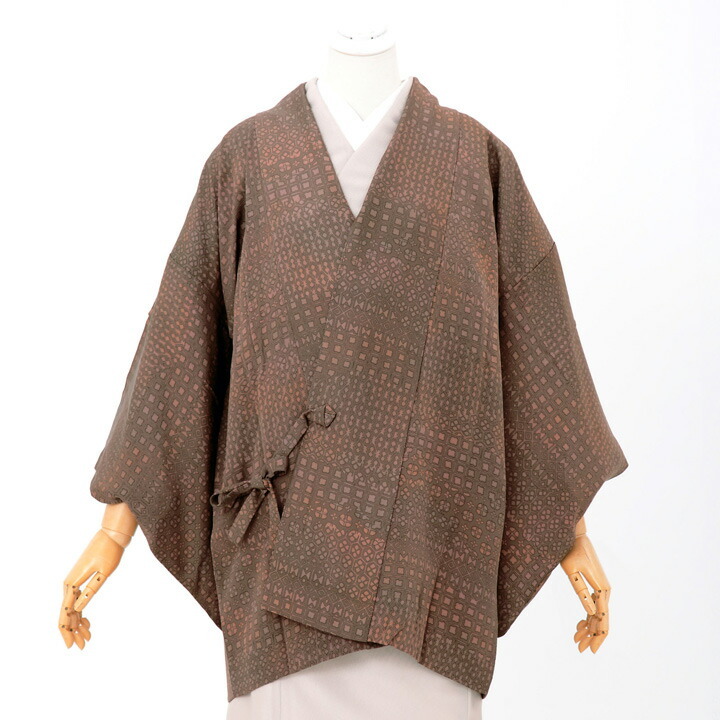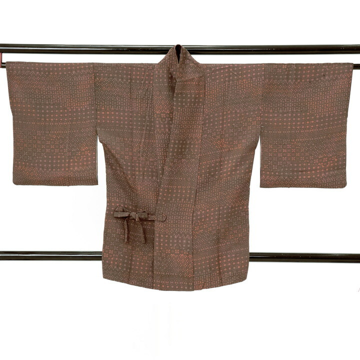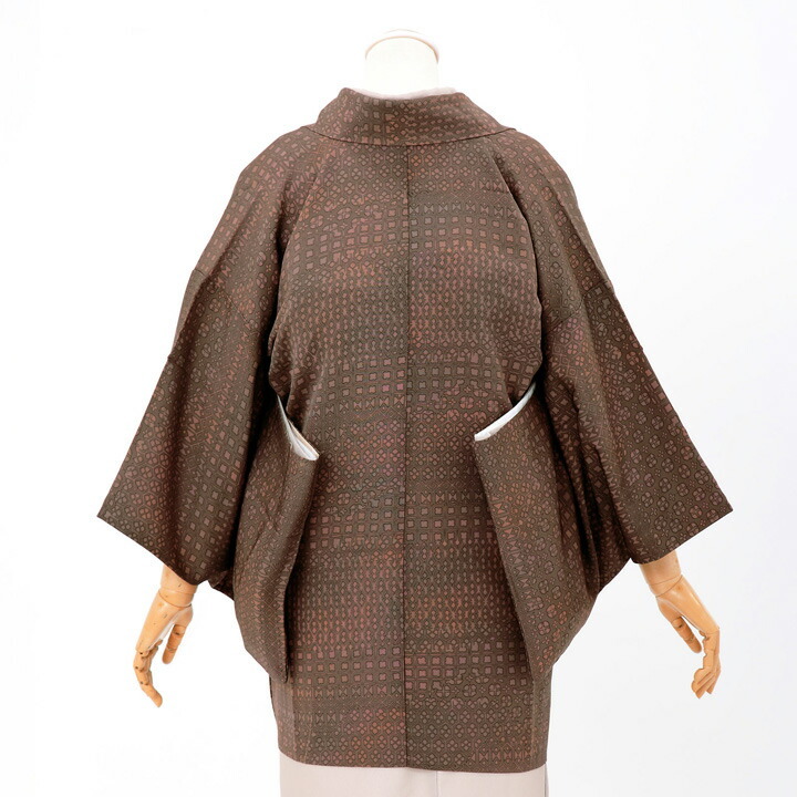 (中古品)着物襟コート「幾何学 紅檜皮色」着物コート 和装コート(メール便不可)