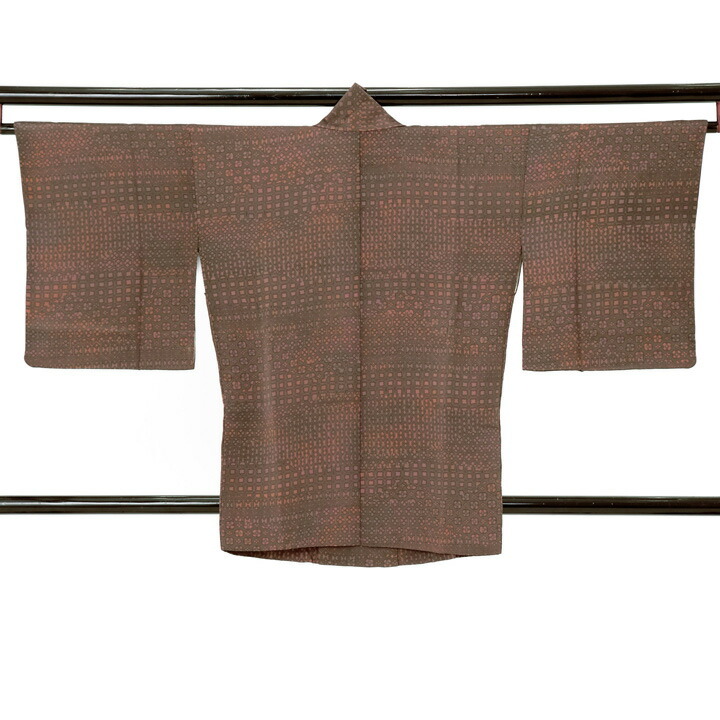 【中古品】着物襟コート「幾何学 紅檜皮色」着物コート 和装コート【メール便不可】