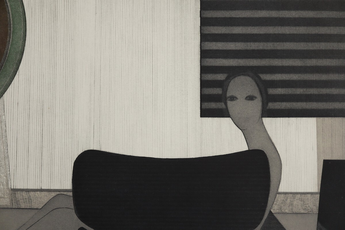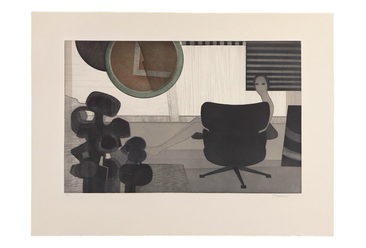 真作 アンドレ・ミノー 銅版画「Woman in Chair」画寸 59.5×38.5cm 仏人作家 キュビスムの様式を取り入れた前衛的な具象画へと移行 11362