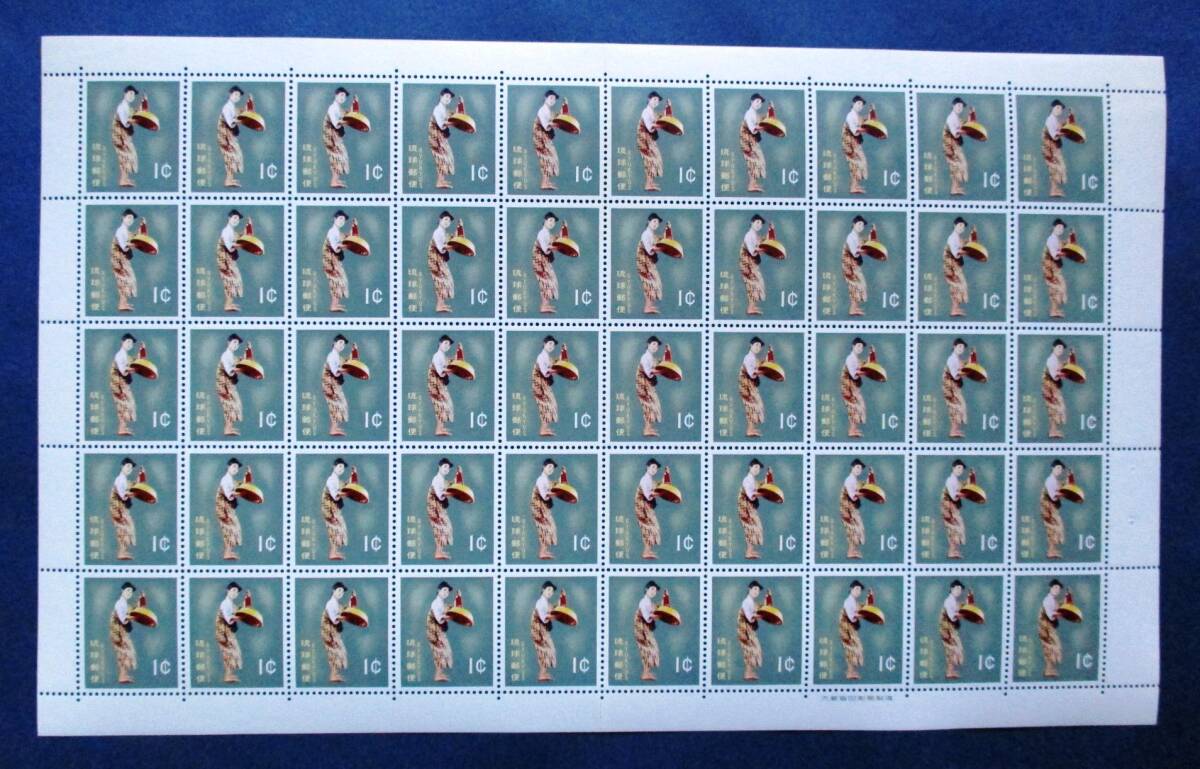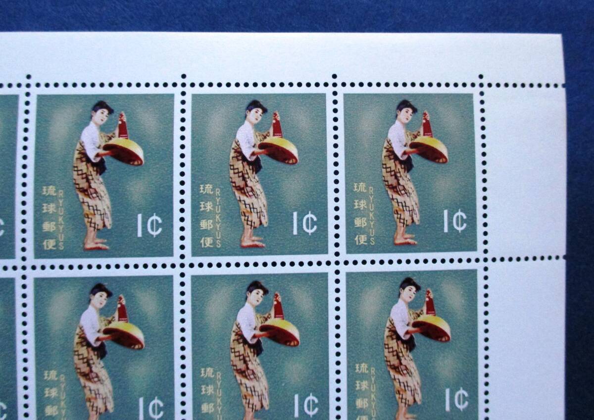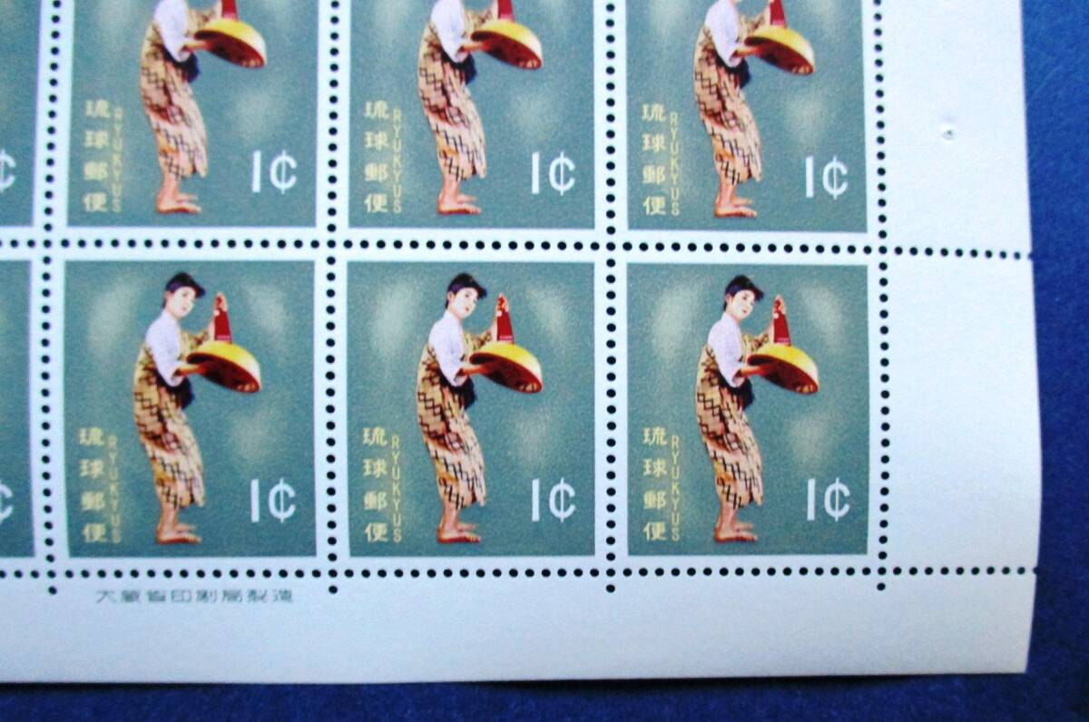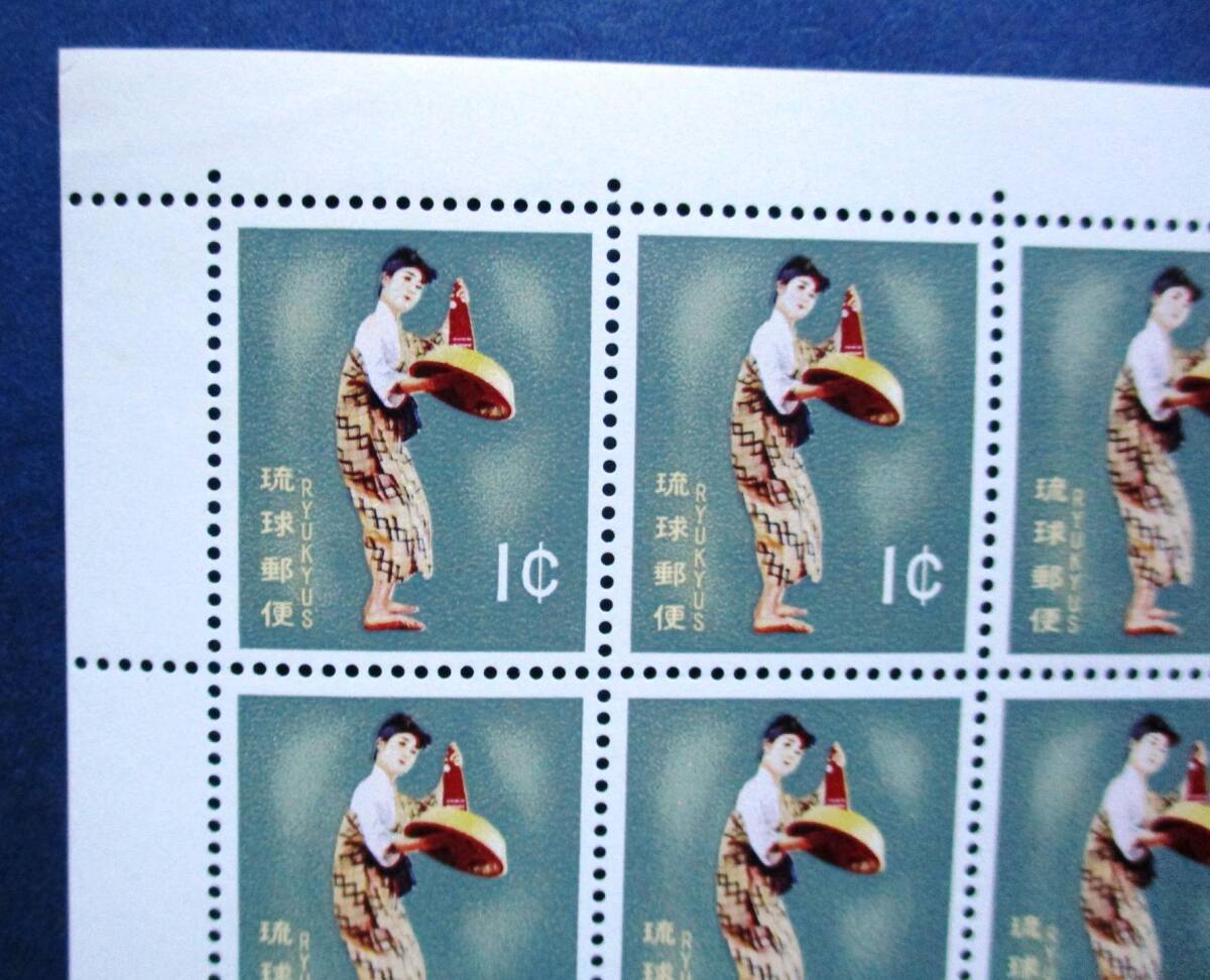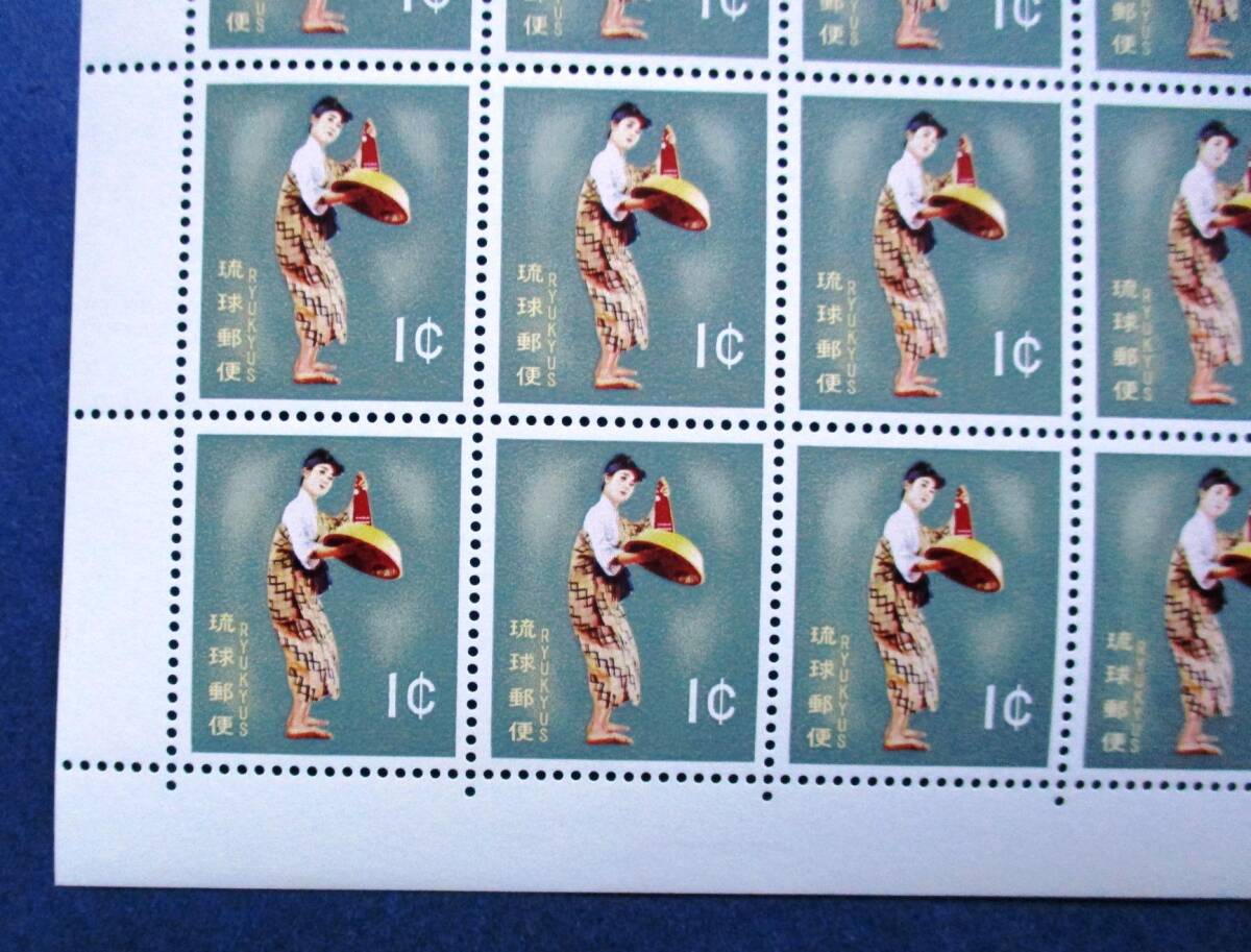 沖縄切手・琉球切手 民族舞踊 2.5¢切手 50面シート S12 ほぼ美品ですが、耳にシミ・小さい穴が二つ開いています。画像参照して下さい。