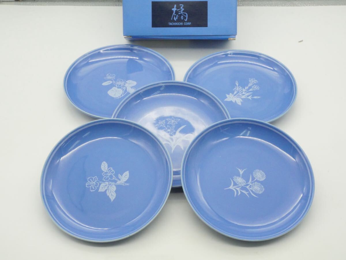 【91-14ミ】 たち吉 橘 銘々皿 小皿 プレート 5枚セット ブルー 未使用品