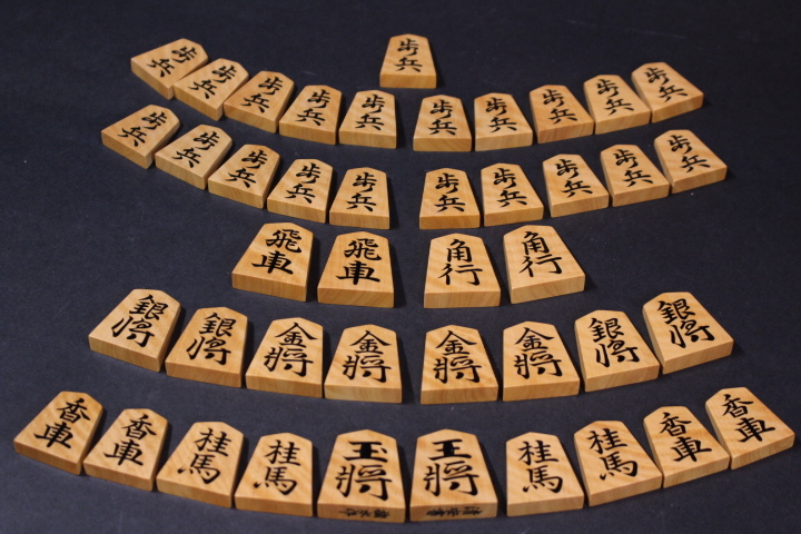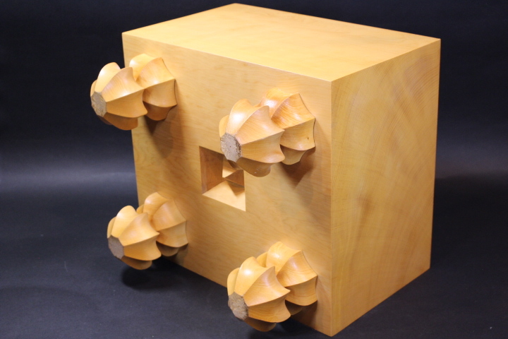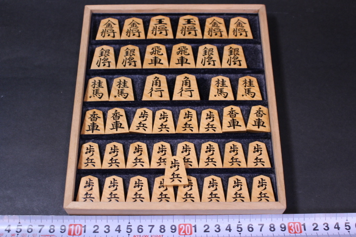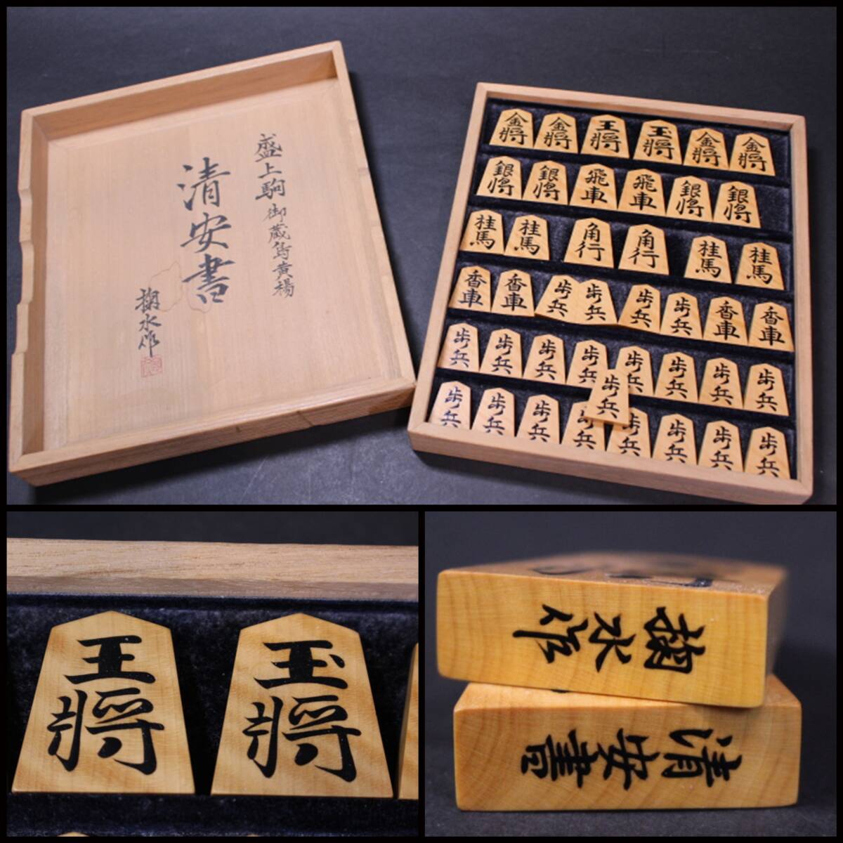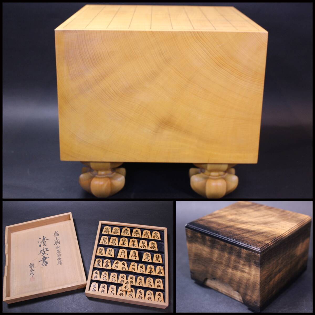 b-7053 本榧脚付極厚将棋盤 盤厚22.5センチ 掬水作 盛上虎斑 御蔵島黄楊将棋駒 共箱 箱付