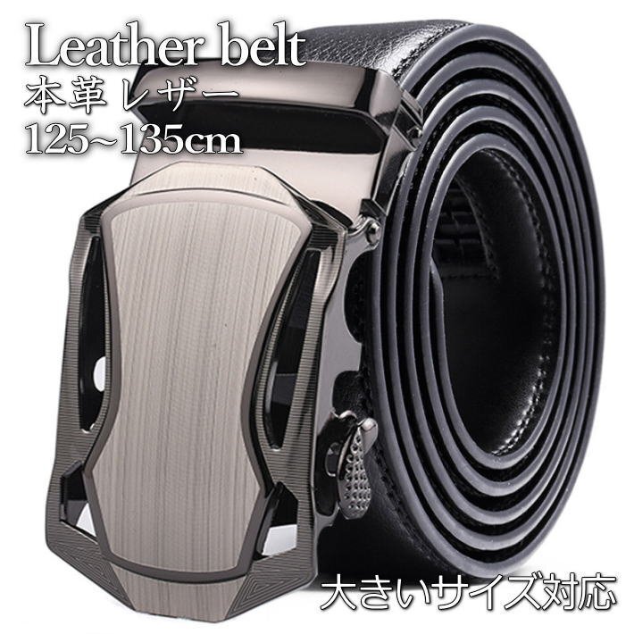 125~135cm 大きいサイズ ビジネスベルト カジュアルベルト メンズ 本革 レザー サイズ調整可能 7988393 G ブラック 黒 新品 1円 スタート