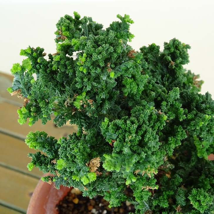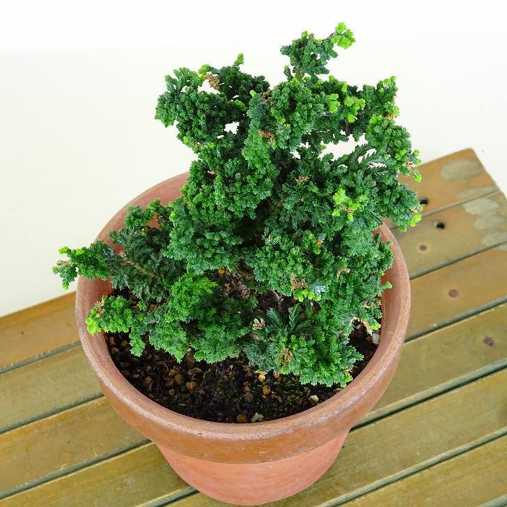 | ■植物ですので撮影時期や季節によって剪定などの手入れにより写真から変化がございます。撮影日をご確認のうえ、ご注文ください。 【石化桧盆栽】 一般的なヒノキより葉が細かく縮れている特徴があります。 |
