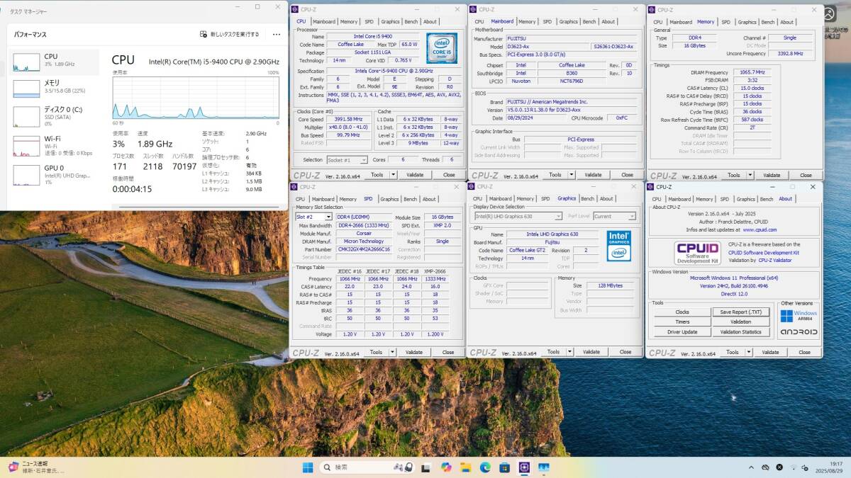 【送料無料】i5-9400 SSD512GB メモリ16GB win11pro office2024 富士通 ssd使用時間0h以内 第9世代
