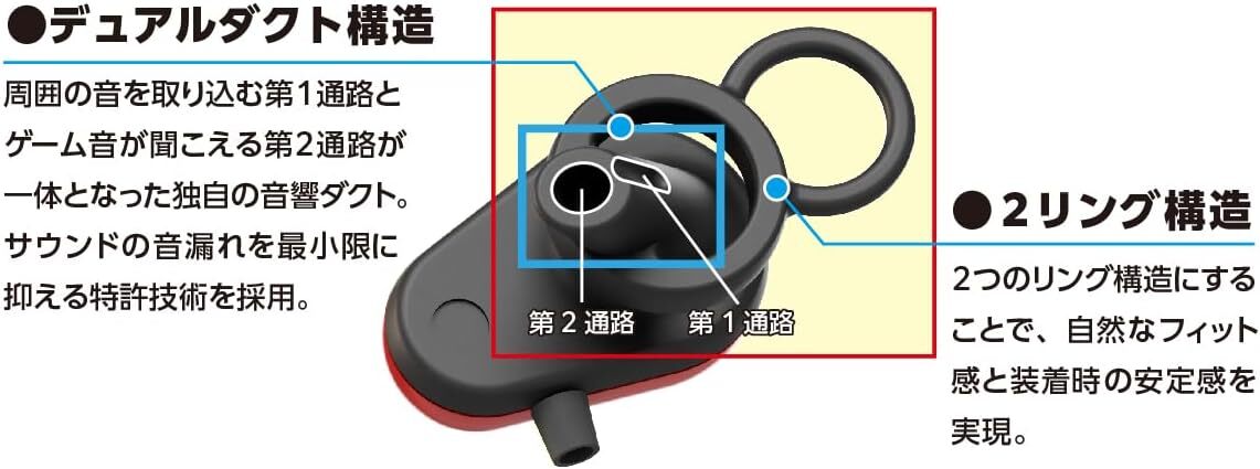周囲の音を取り込む第1通話とゲーム音が聞こえる第2通話が一体となった独自の音響ダクト。