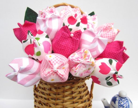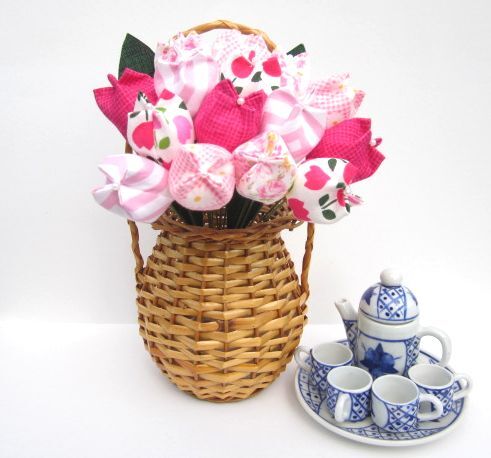 ★チューリップ★ハンドメイド★花★ブーケ★15本+葉っぱ2枚★チェリーピンク
